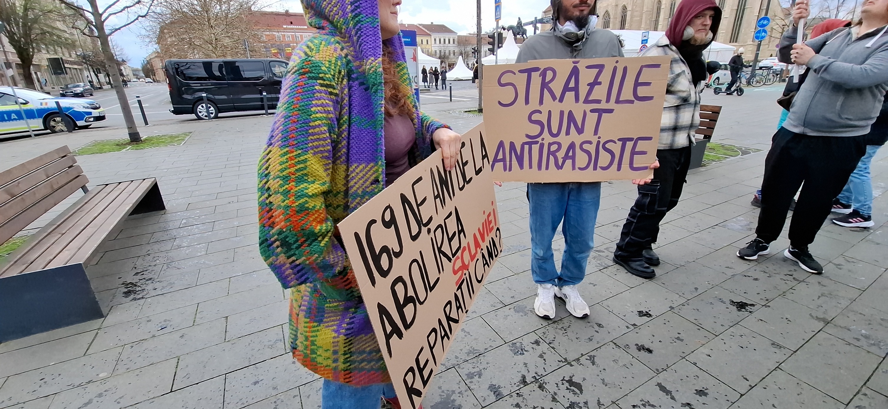 FOTO Protest pro comunitatea romă în centrul Clujului. „169 de ani de la abolirea sclaviei. Reparații când?”