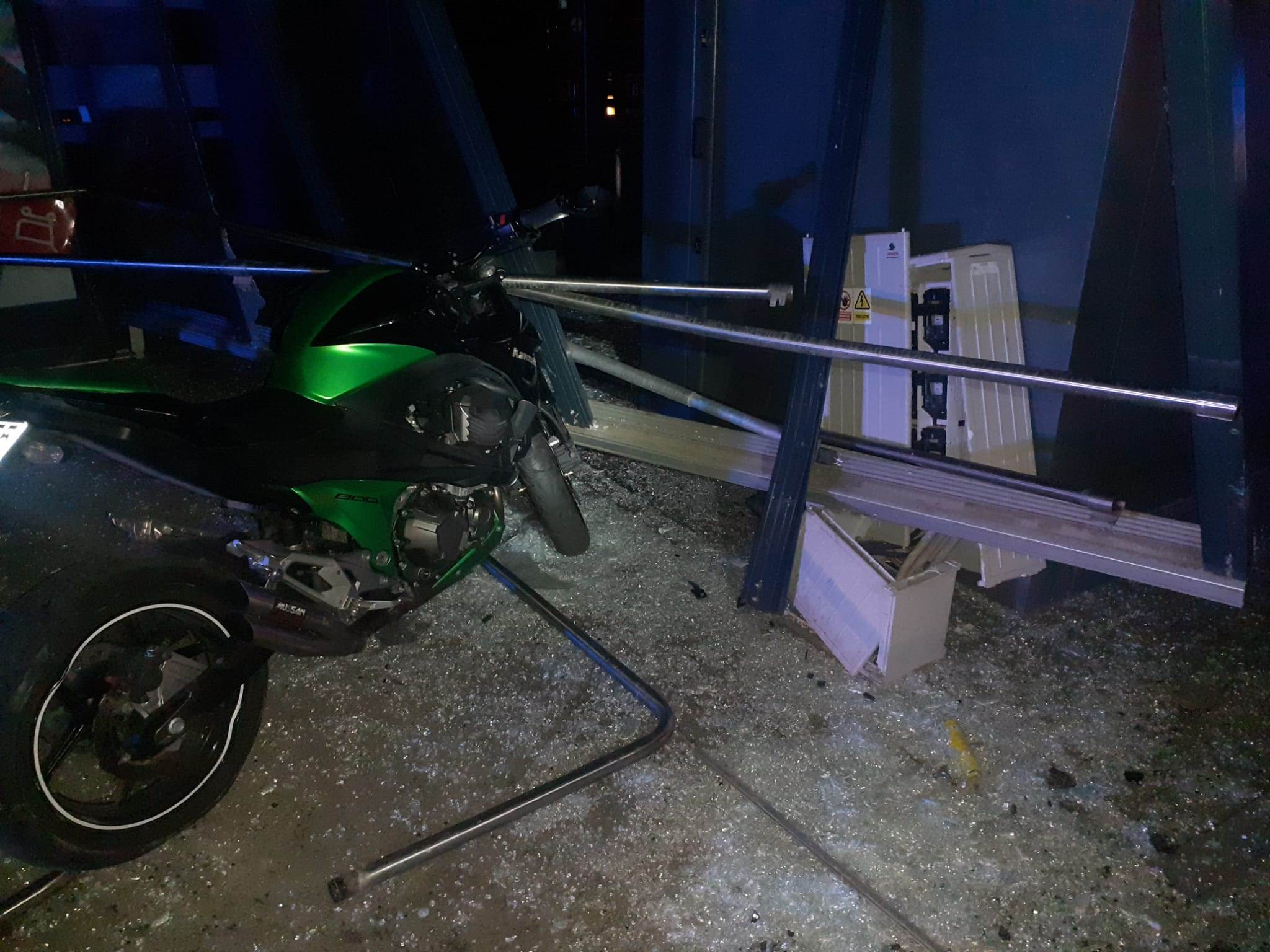 „În jurul orei 22.50, un tânăr de 22 de ani, care se deplasa cu o motocicletă pe strada Calea Victoriei, din municipiul Turda a pierdut controlul asupra direcției de deplasare pe un sector de drum cu o curbă ușoară la stânga și a acroșat o bordură, iar apoi a intrat în coliziune un spațiu de depozitare a coșurilor de cumpărături aparținând unei societăți comerciale, ulterior acesta fiind proiectat într-un geam al respectivului magazin.