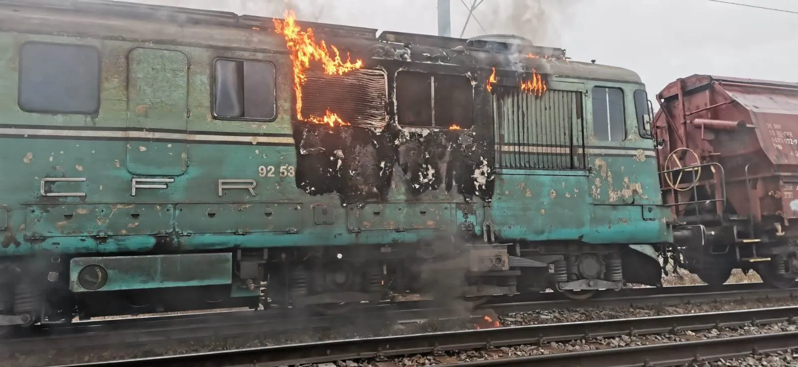 Sâmbătă dimineața, locomotiva unui tren marfar a fost cuprinsă de flăcări în Dej. Din primele informații, incendiul este localizat și se lucrează pentru lichidarea acestuia.
