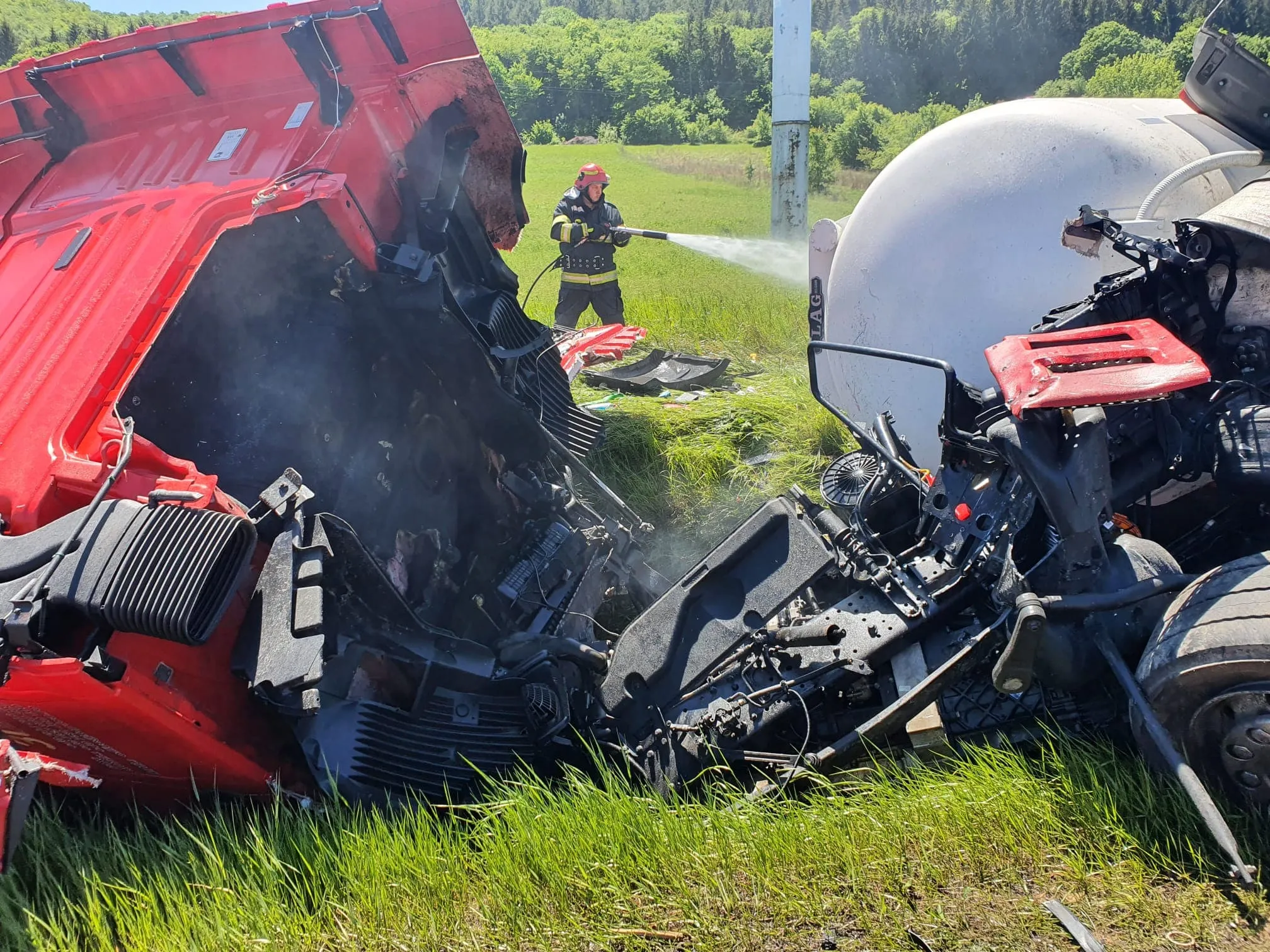 Pompierii clujeni au intervenit joi, la un accident rutier grav, în localitatea Căpușu Mare, județul Cluj. La fața locului a fost găsit un autoturism avariat, în care se afla încarcerată o tânără în stare gravă, precum și o autocisternă răsturnată.