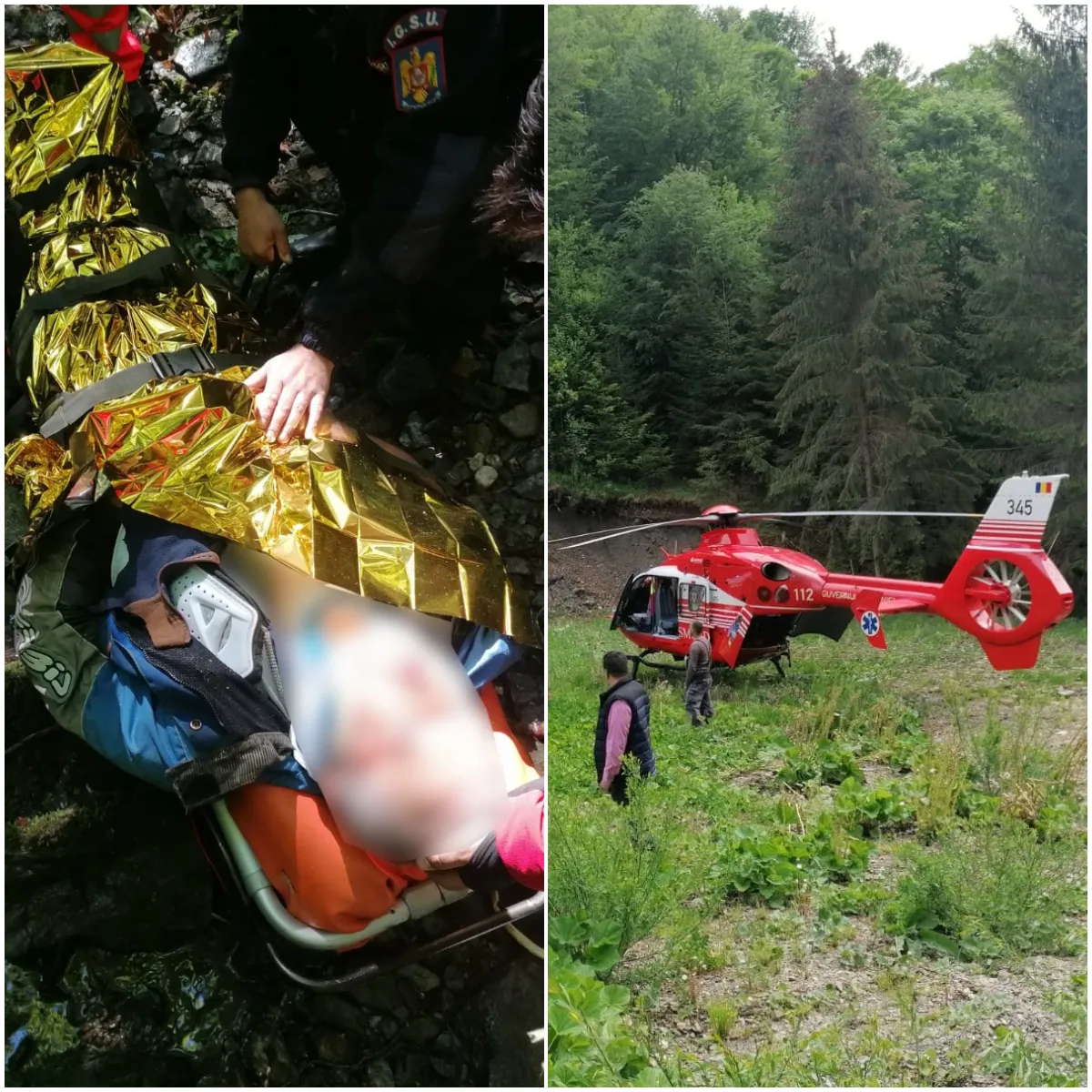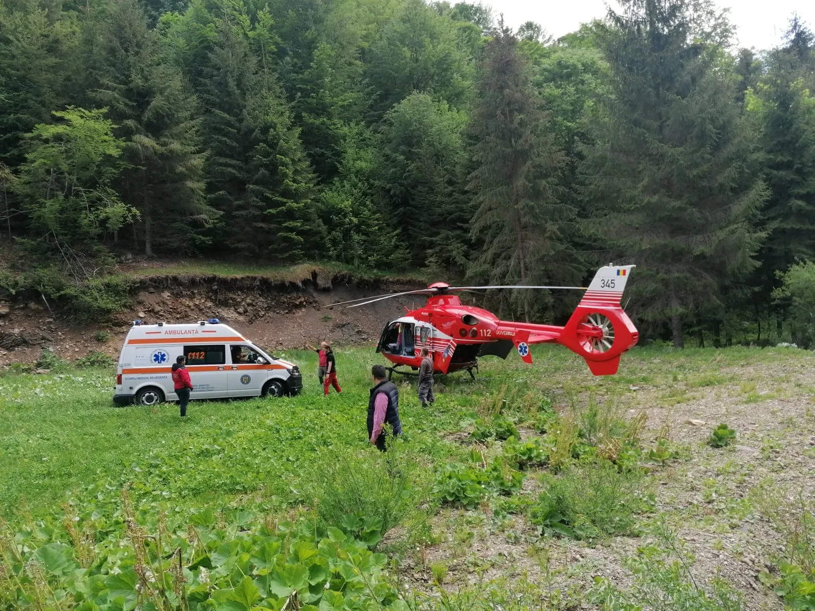 „Pompierii din cadrul Detașamentului Huedin au intervenit pentru a oferi sprijin la un accident rutier petrecut în localitatea Răchițele. Apelul de urgență a fost primit în jurul orei 9:35, iar la misiune a participat în primă instanță o autospecială cu modul de descarcerare, precum și un echipaj SAJ. Ajunși la fața locului, pompierii au găsit o motocicletă cu ataș căzută într-o râpă adâncă de aproximativ patru metri. Două persoane, conștiente și cooperante, au avut nevoie de îngrijiri medicale. Astfel, a fost chemat în sprijin și elicopterul SMURD de la Jibou. Ajutați de un echipaj de la Salvamont, pompierii au coborât în râpă și i-au extras cu echipamentele speciale, pentru a nu le agrava leziunile. În cele din urmă, un bărbat de 64 de ani a fost transportat la spital cu elicopterul SMURD. Celălalt, în vârstă de 59 de ani, a fost transportat cu ambulanța la spital”, anunță ISU Cluj.