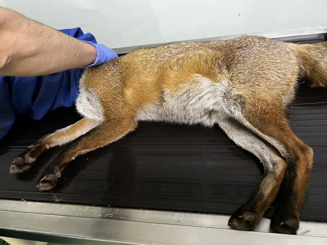 O vulpe rănită la ieșire din oraș a fost salvată de o organizație pentru protecția mediului, cu participarea Poliției locale Cluj-Napoca.