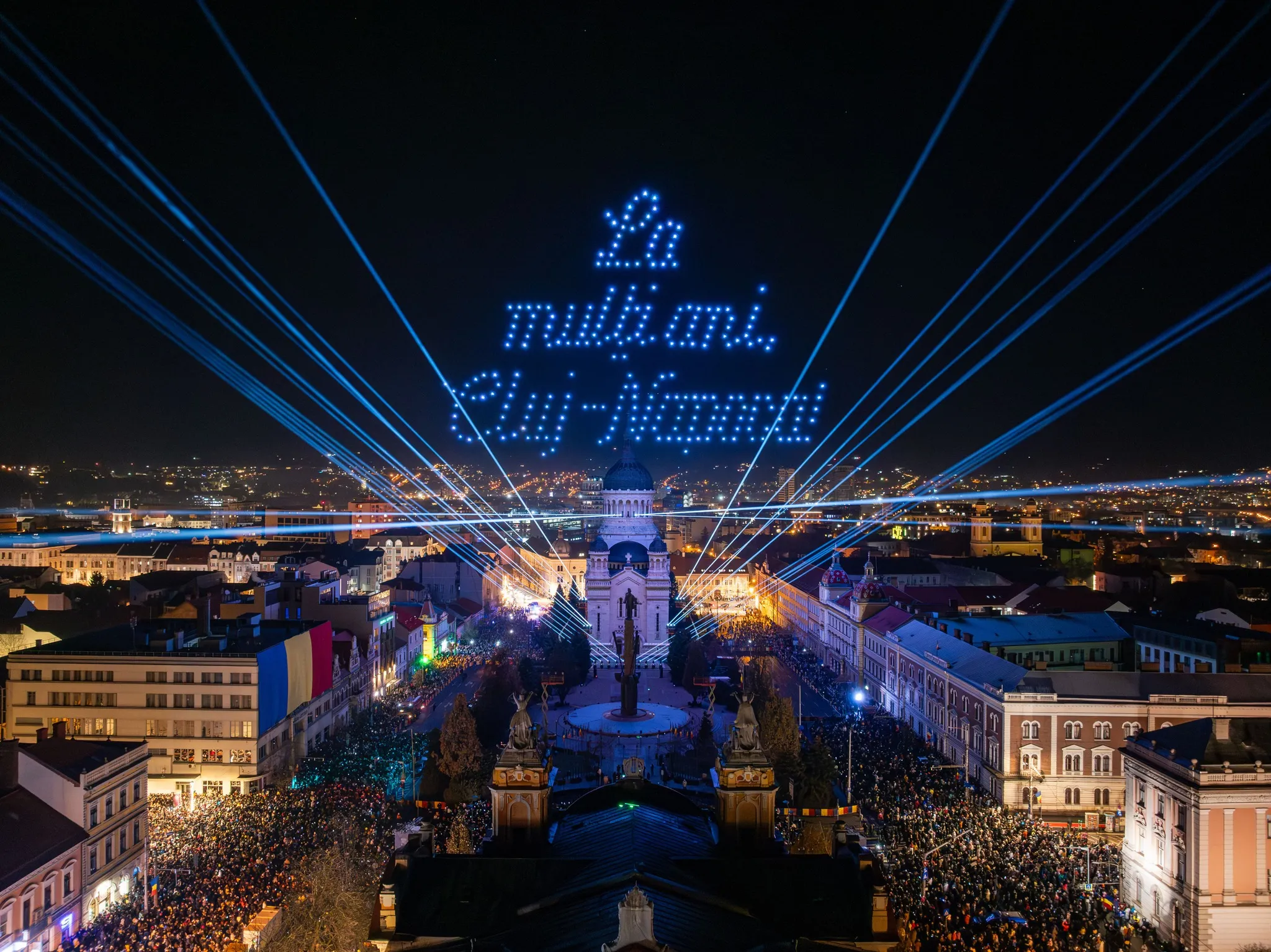 Spectacolul de drone din Piața Avram Iancu a fost creat pentru celebrarea Zilei de 1 Decembrie, Ziua Națională a României.
