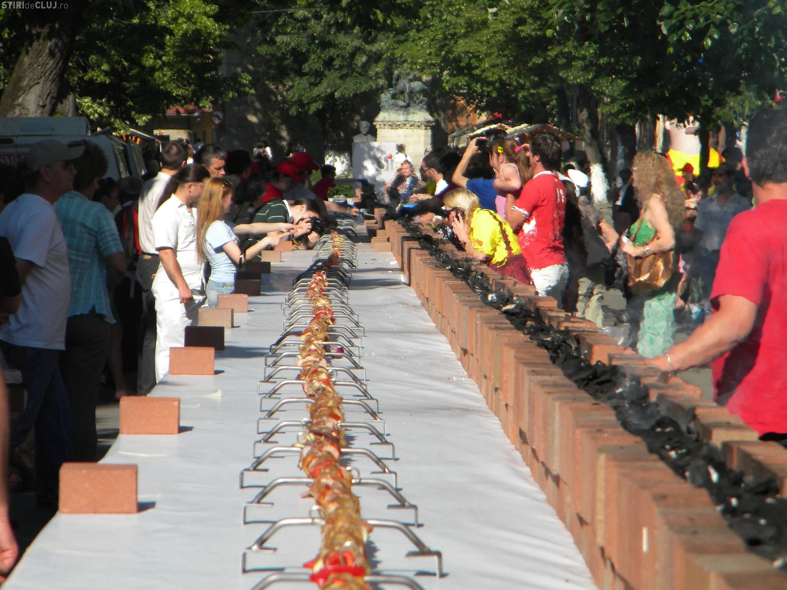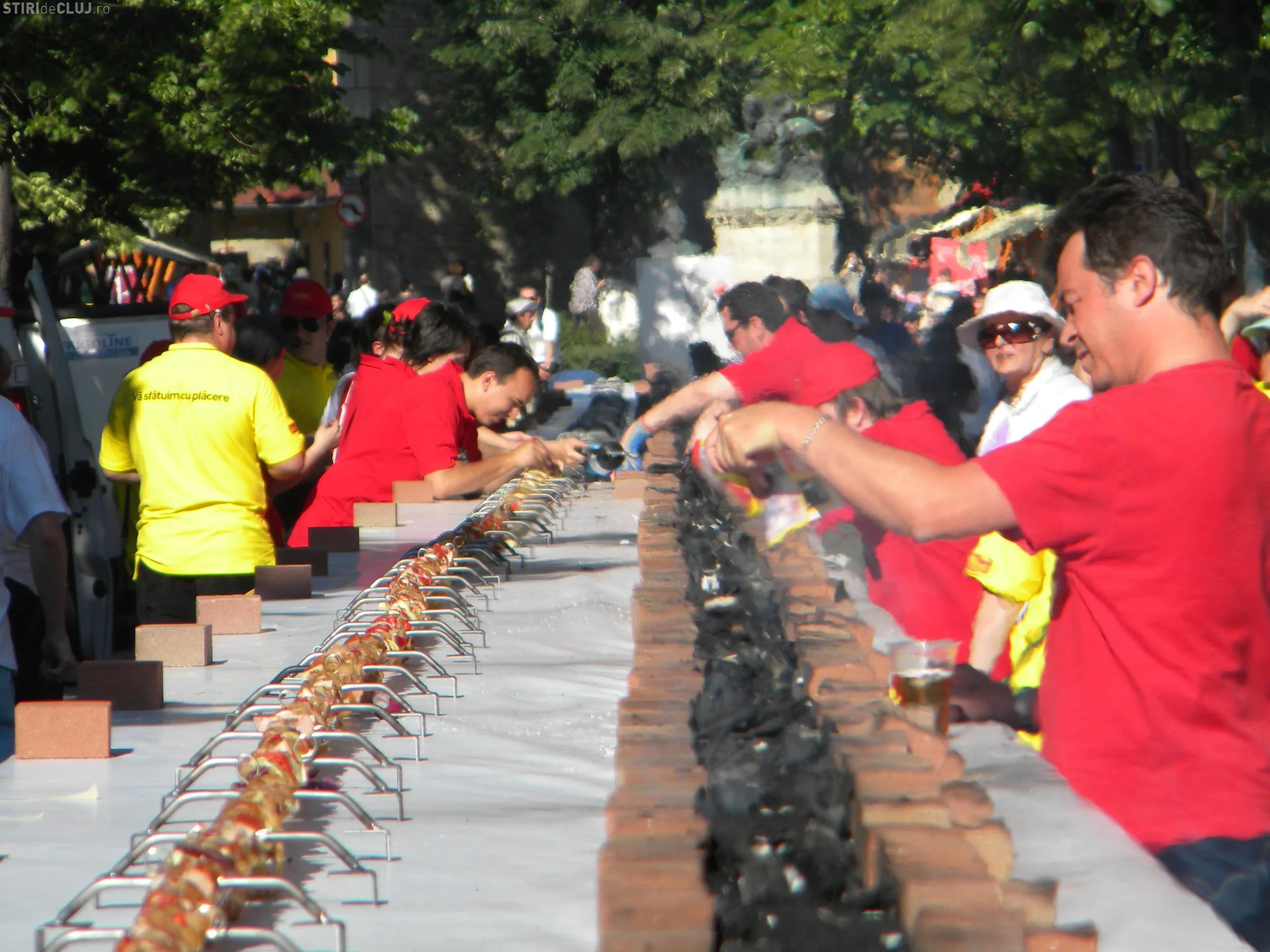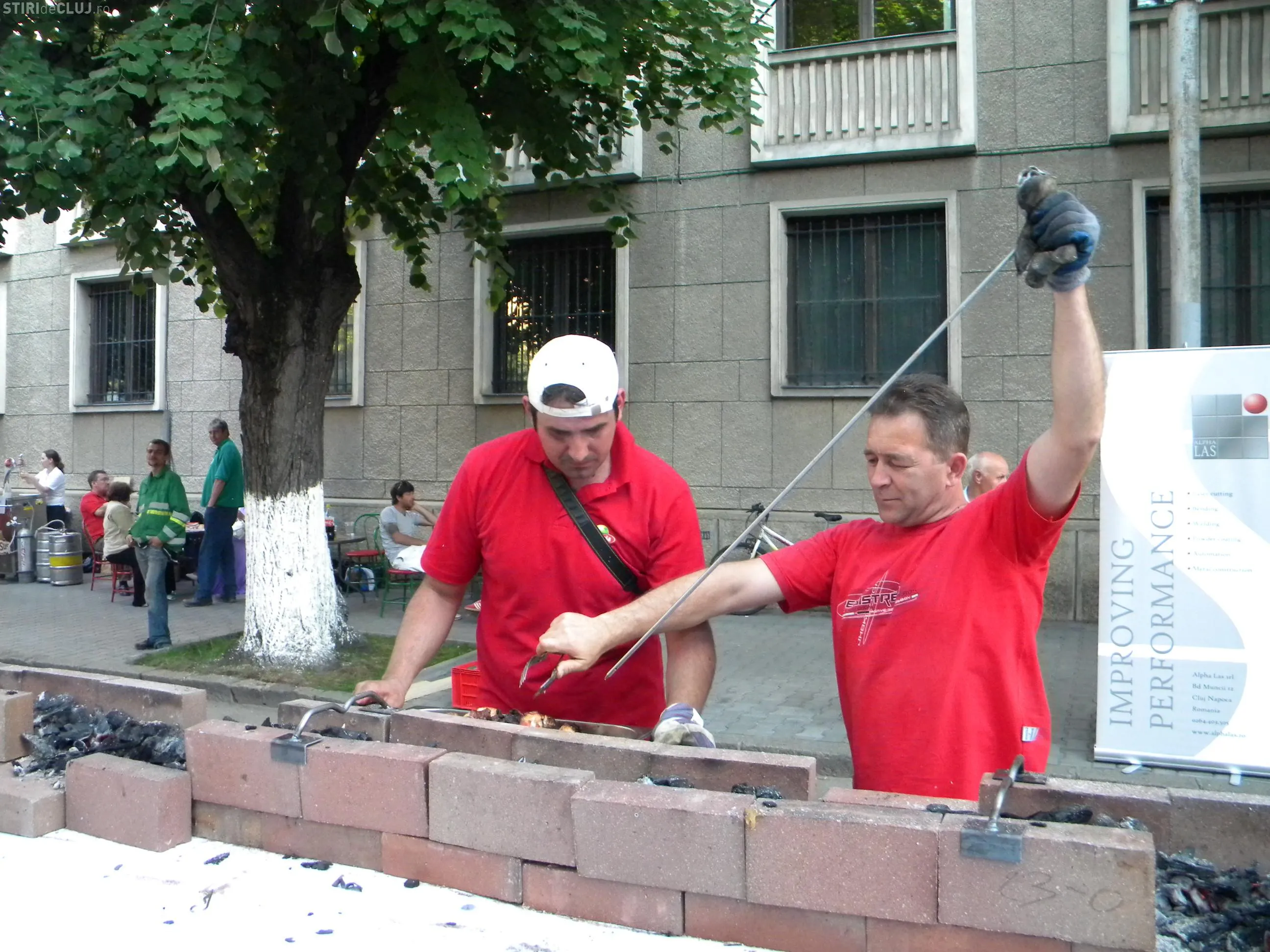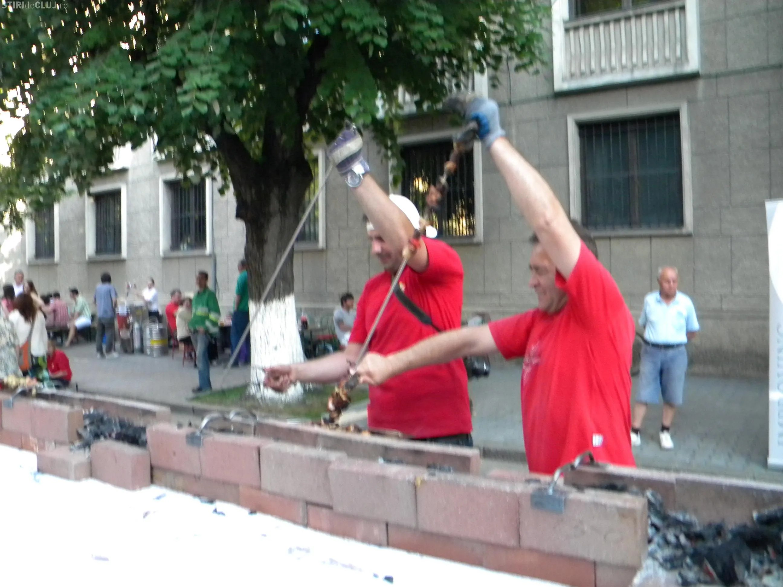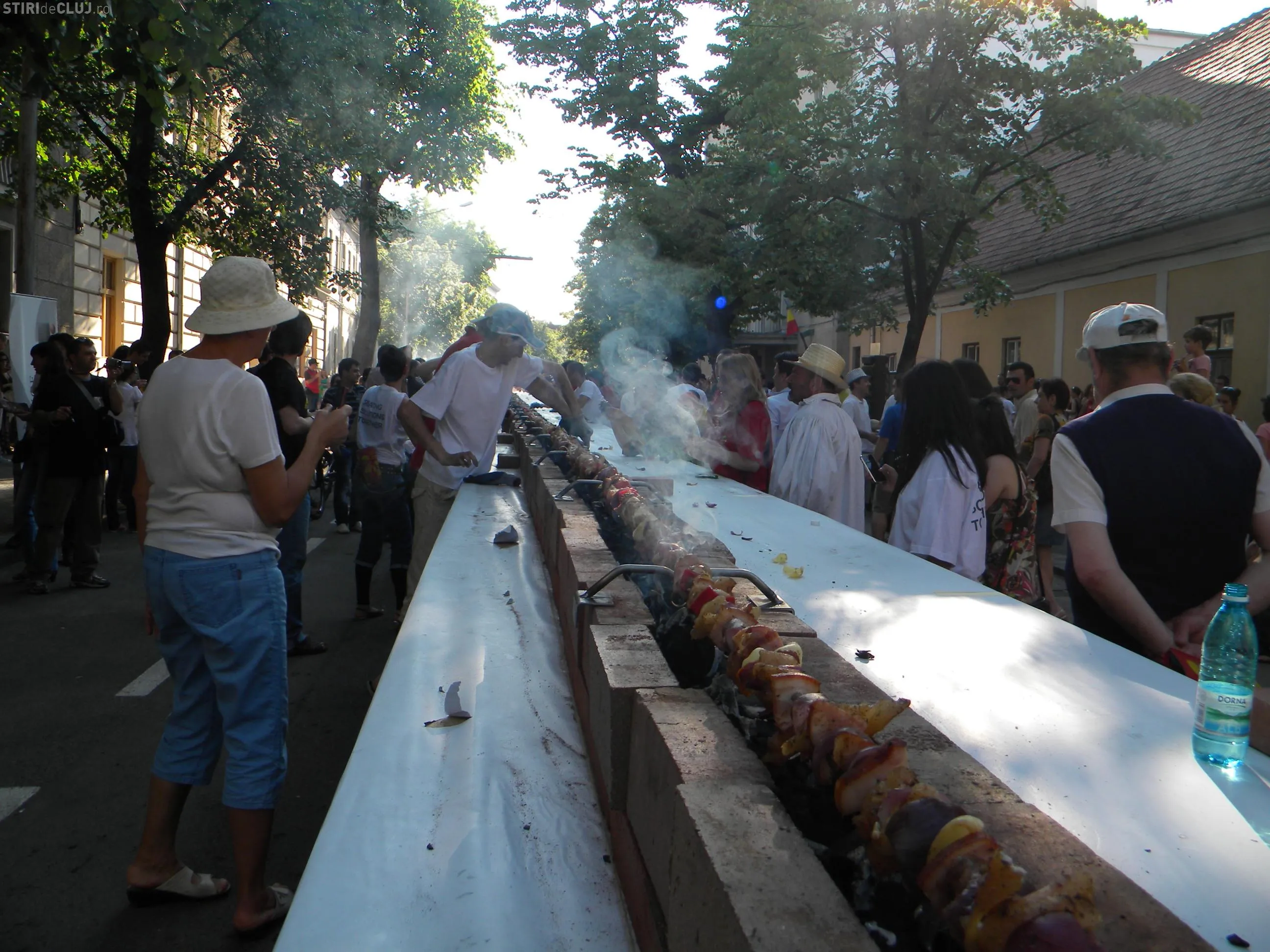 In jurul orei 19.00, clujenii au fost o coada lunga de circa 10 metri pe strada Mihail Kogalniceanu pentru a gusta din frigaruia gigant. "Am vandut portiile contra unor donatii de 5 lei, iar banii vor merge catre o asociatie care are grija de cipiii care fac dializa. Asa se explica si numarul mare de clujeni care vor sa guste din munca noastra", a mai spus la final Adi Hadean.