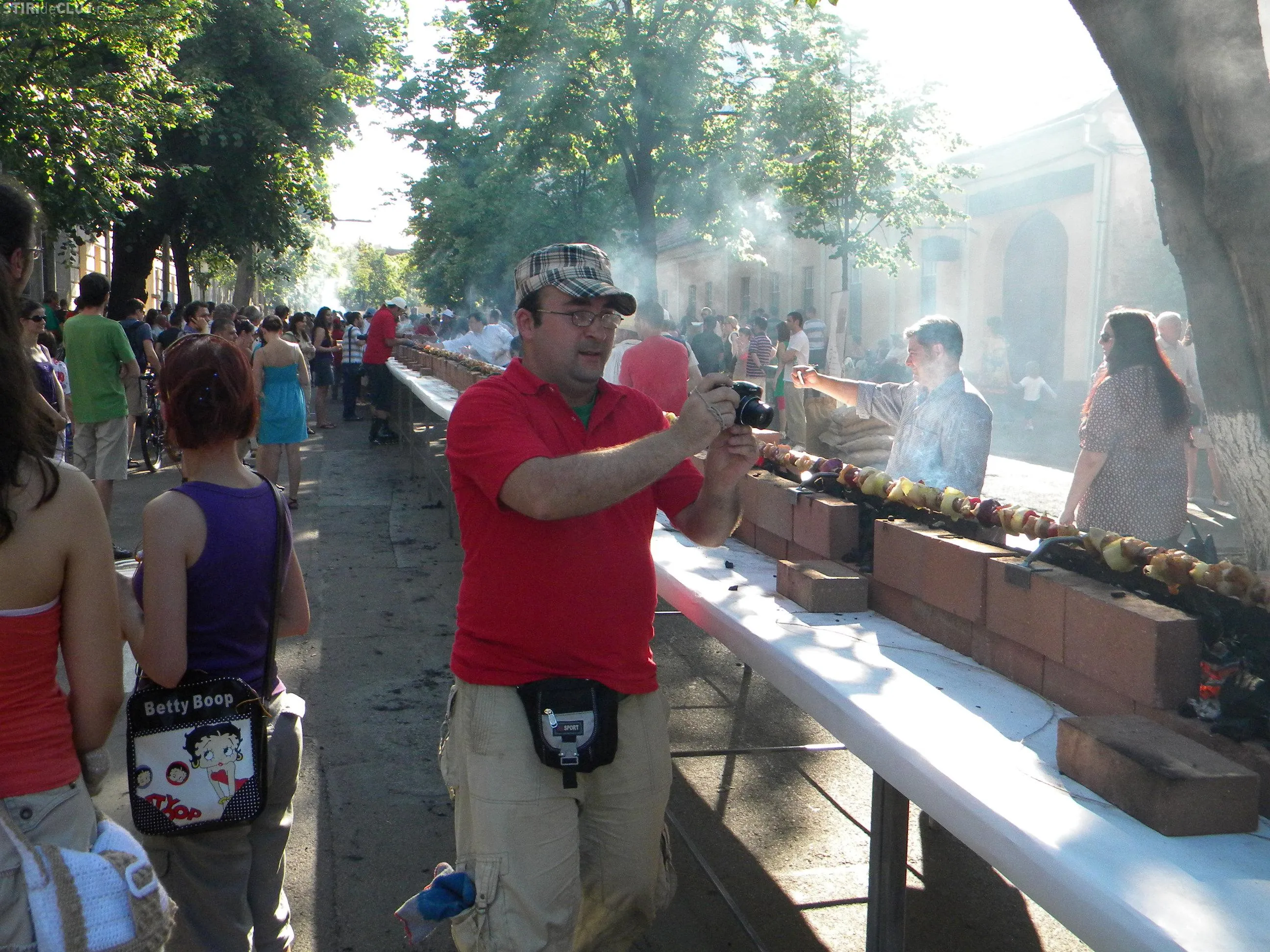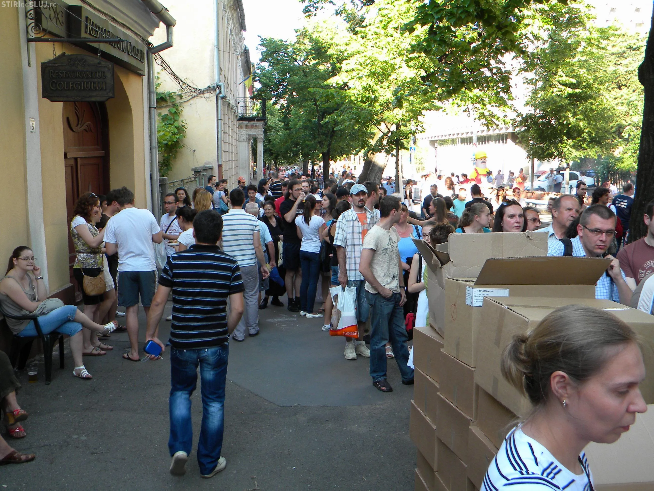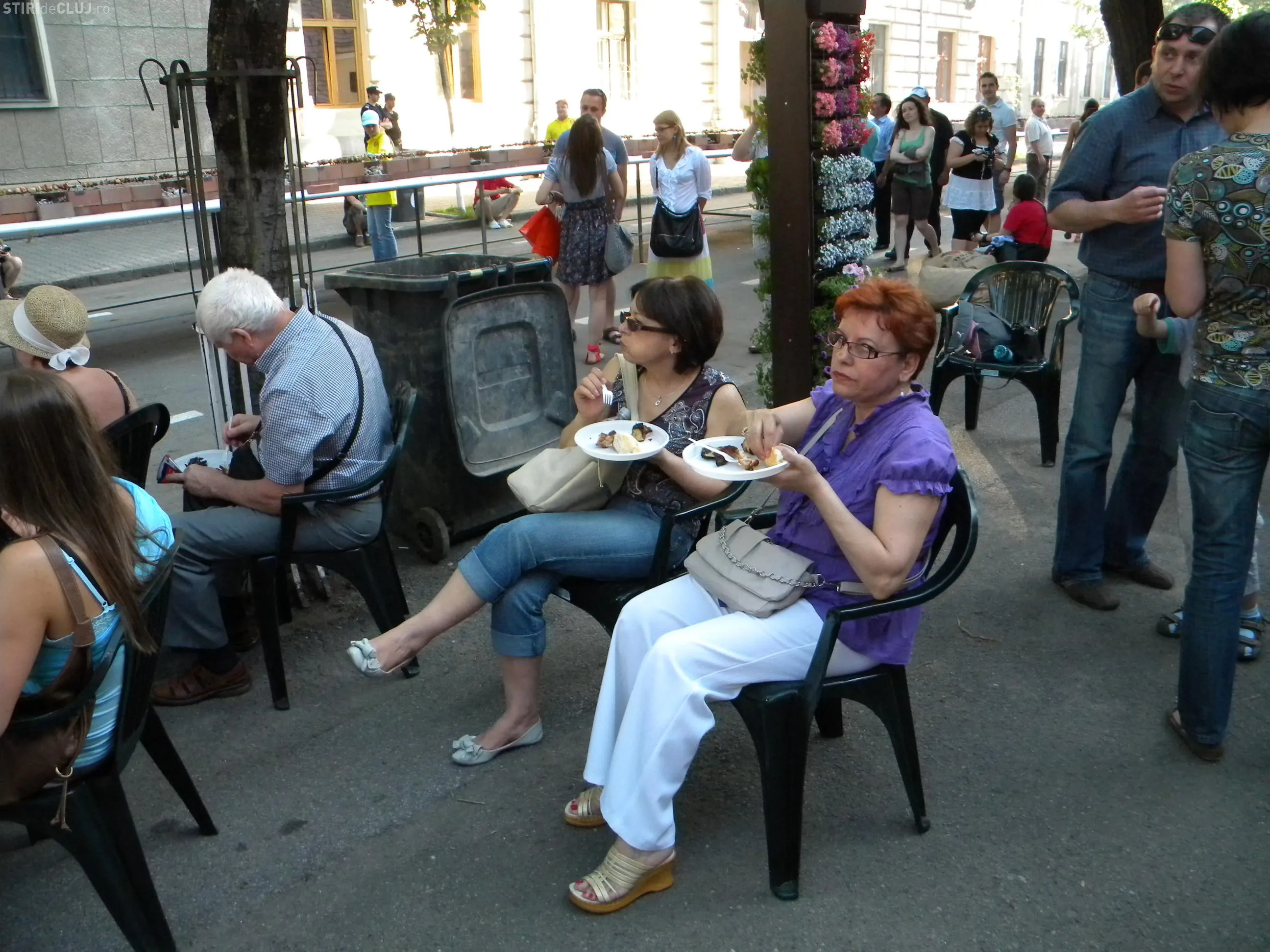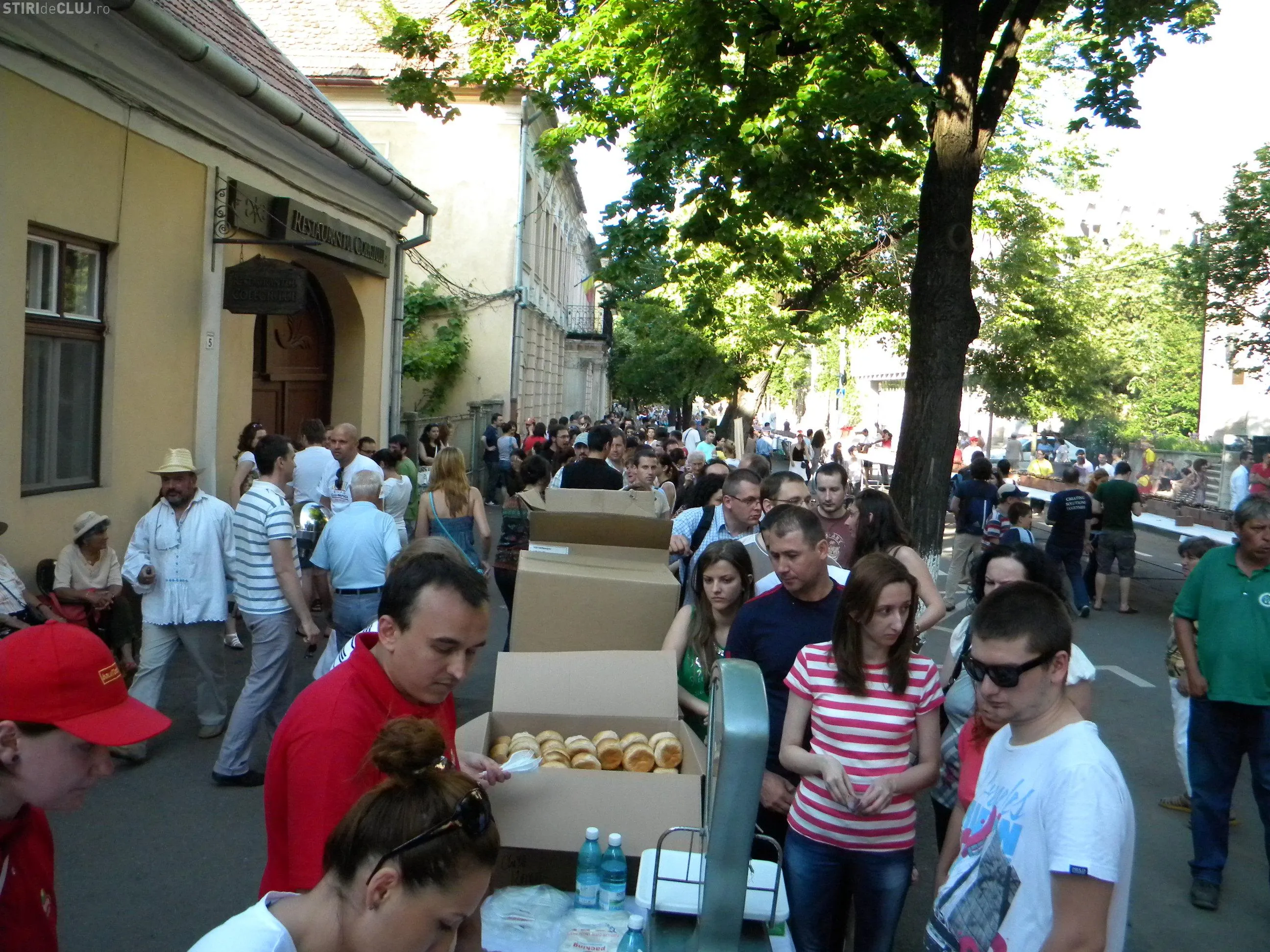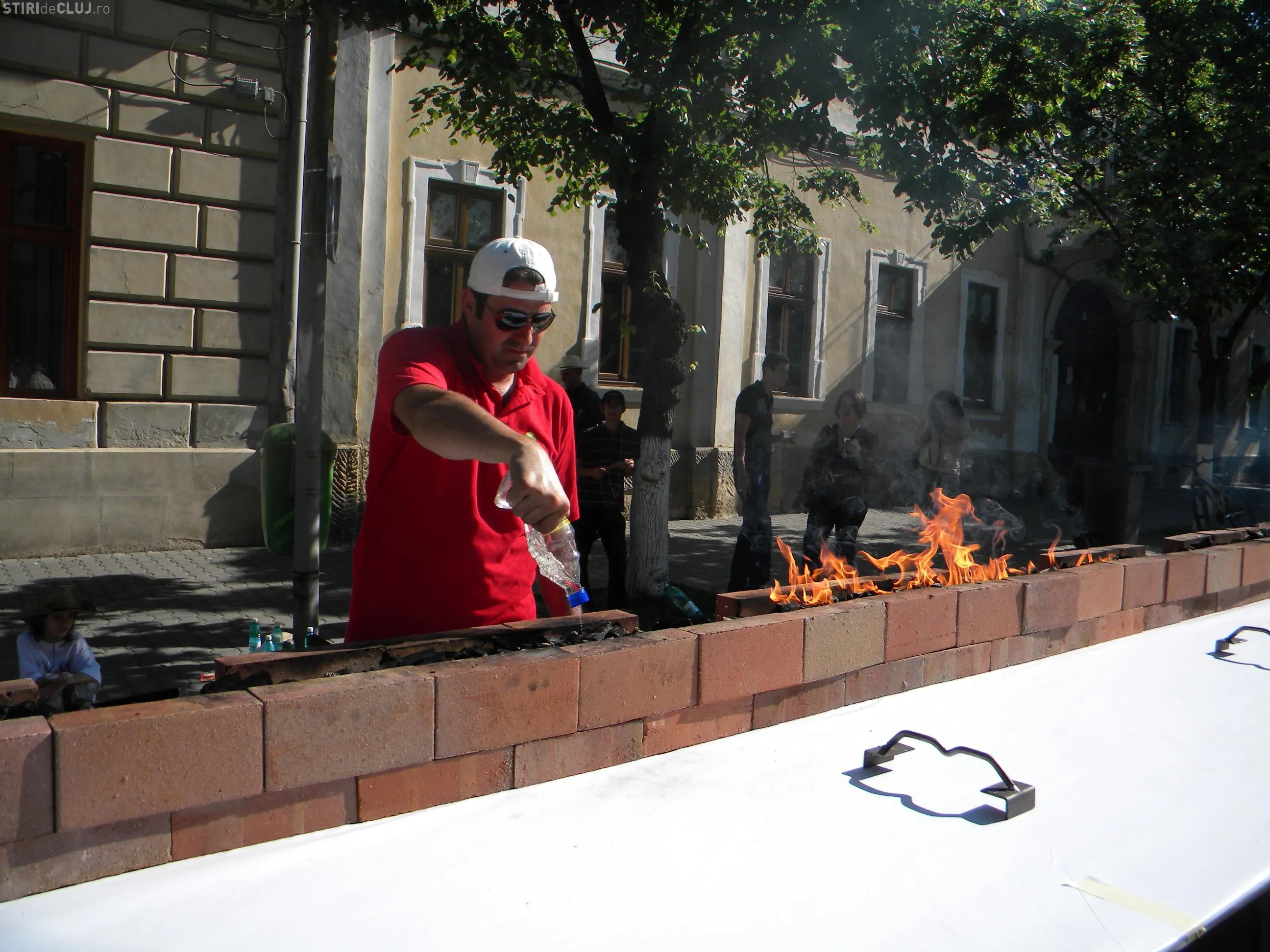 In jurul orei 19.00, clujenii au fost o coada lunga de circa 10 metri pe strada Mihail Kogalniceanu pentru a gusta din frigaruia gigant. "Am vandut portiile contra unor donatii de 5 lei, iar banii vor merge catre o asociatie care are grija de cipiii care fac dializa. Asa se explica si numarul mare de clujeni care vor sa guste din munca noastra", a mai spus la final Adi Hadean.
