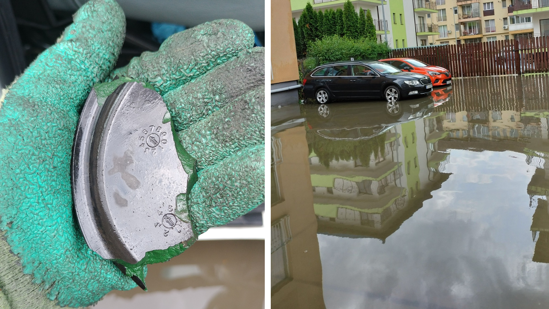 Un clujean descrie situația apocaliptică cauzată de ploaia torențială de azi. Canalele nu au mai făcut față debitului ridicat de apă și au început să refuleze, scoțând la suprafață apa murdară. Din păcate acest eveniment a rezultat și în daune materiale, același om explică cum din cauza apei mai multe părți ale mașinii au fost stricate sau chiar rupte.
