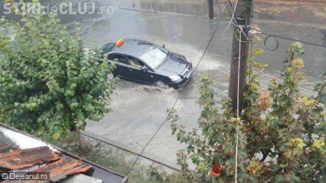 Furtuna a făcut PRĂPĂD la Dej. Canalizarea a refulat pe străzi, iar copacii au fost smulși din pământ