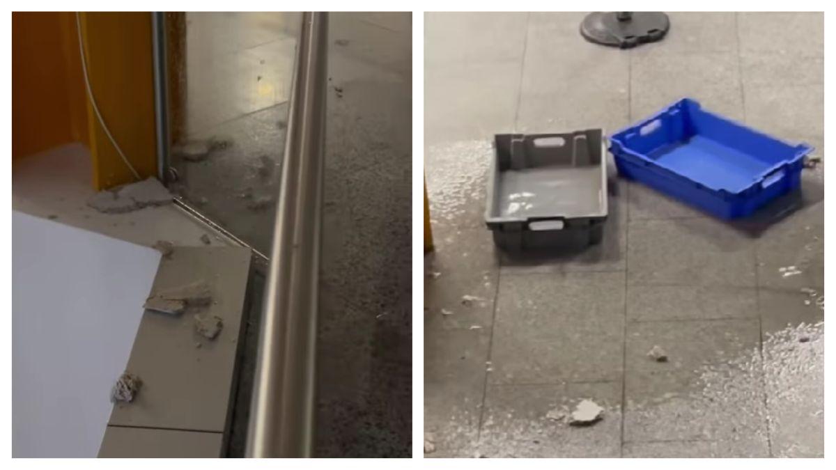 Pe lângă aceste probleme, o porțiune de câțiva centimetri din tavan a cedat din cauza ploii.