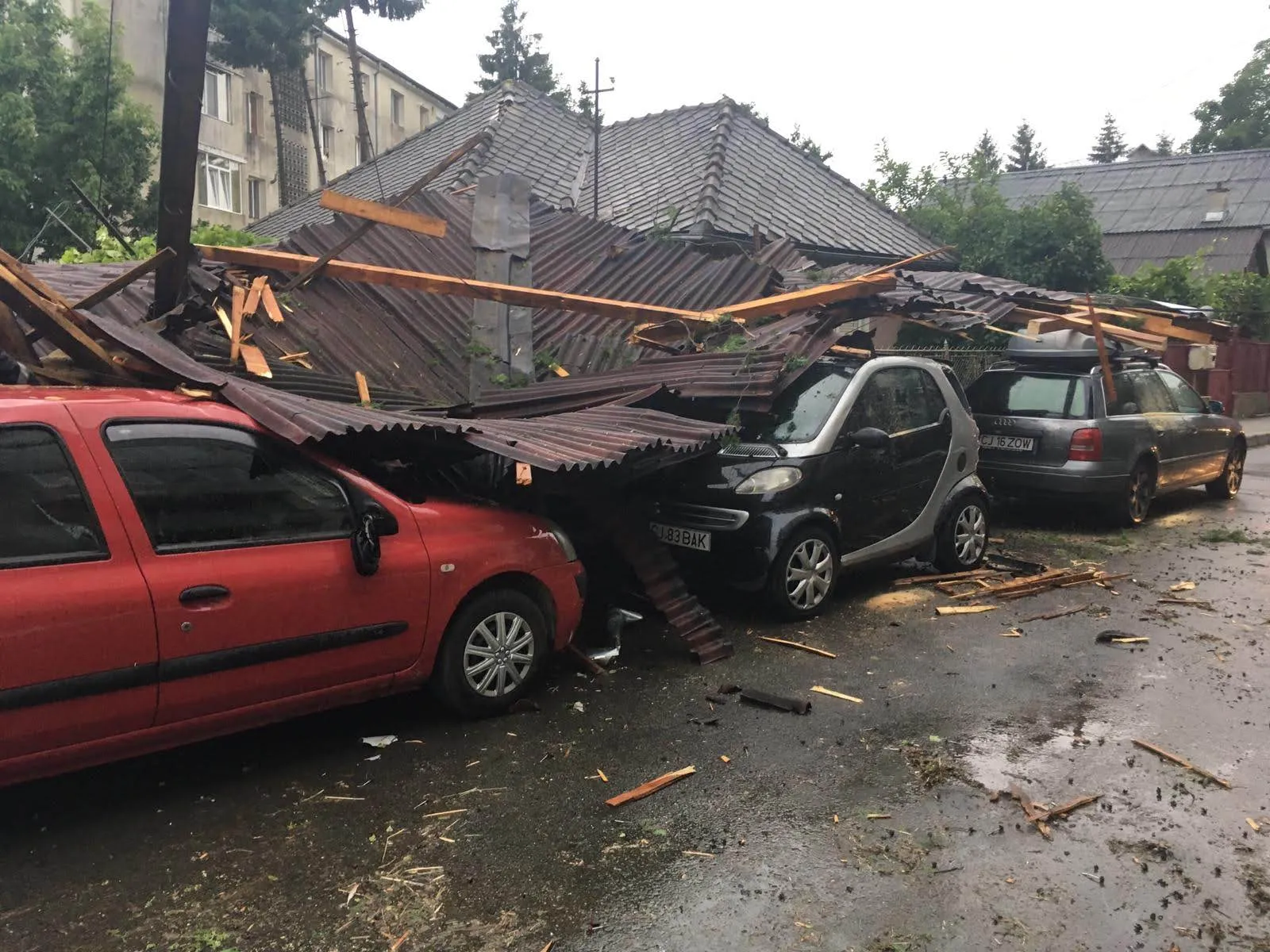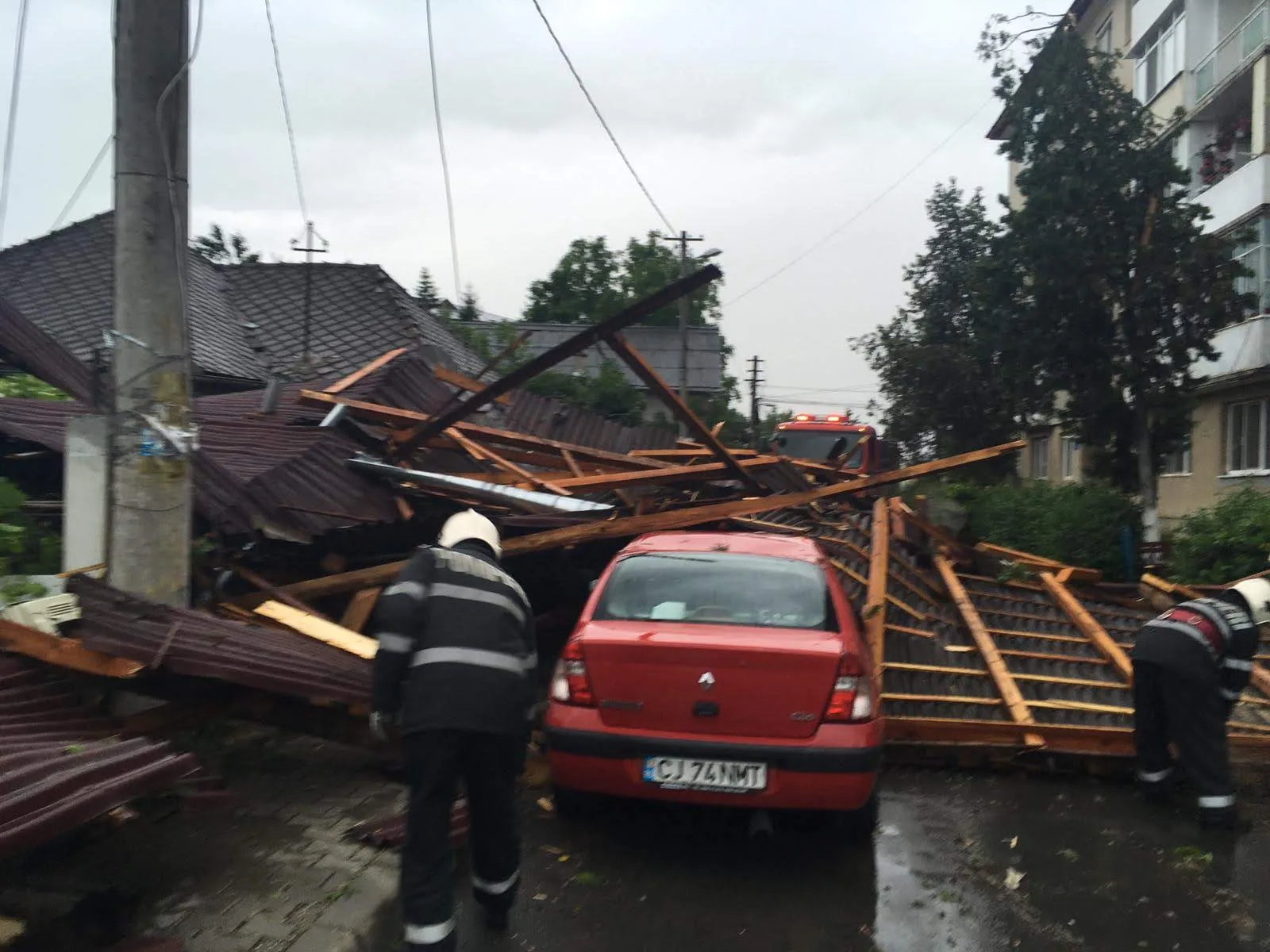 Inspectoratul pentru Situații de Urgență Cluj a intervenit la zeci de cazuri, de la copaci smulși din pământ, la țigle mașini avariate, acoperișuri desprinse sau stâlpi de electricitate căzuți pe carosabil.