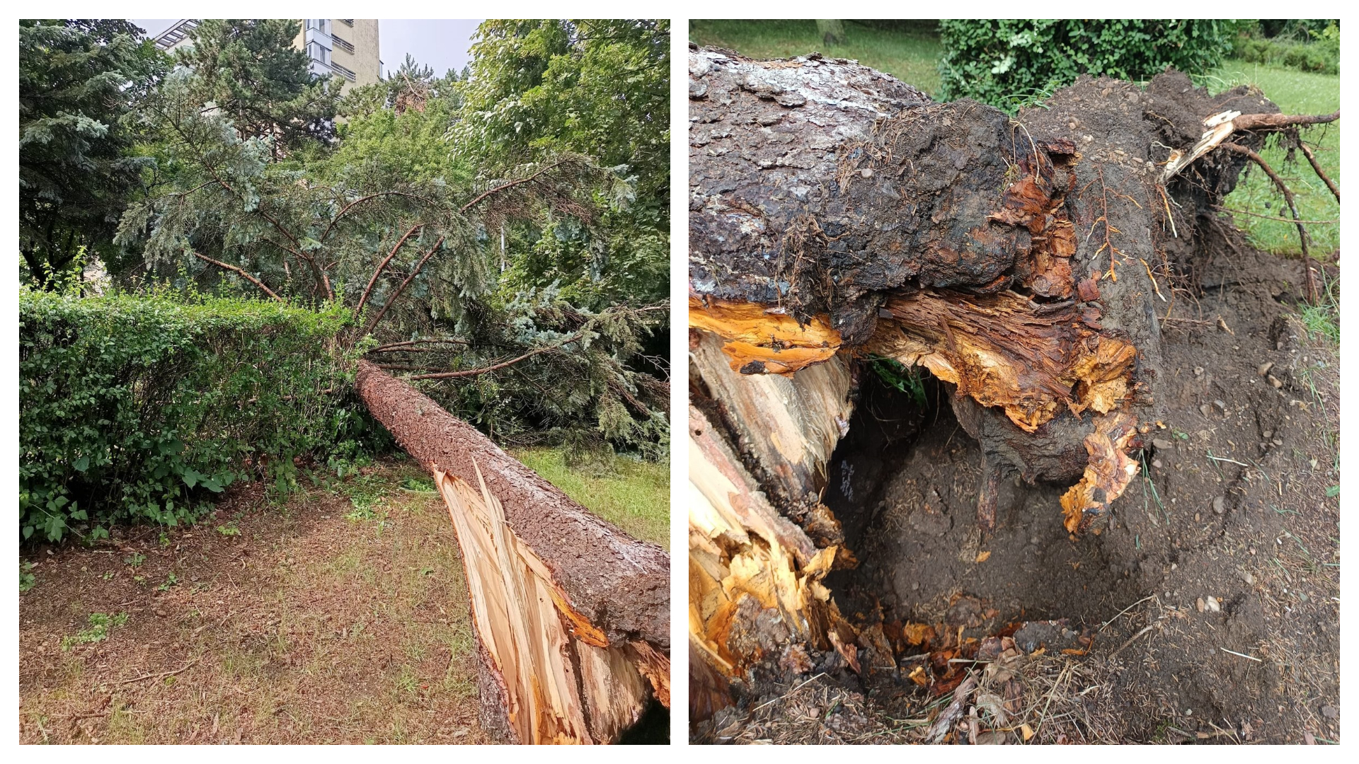 În urma vântului puternic și a averselor, un copac a fost smuls cu totul din pământ. Acesta a fost scos complet din rădăcini, apoi a căzut peste arborii din apropiere.