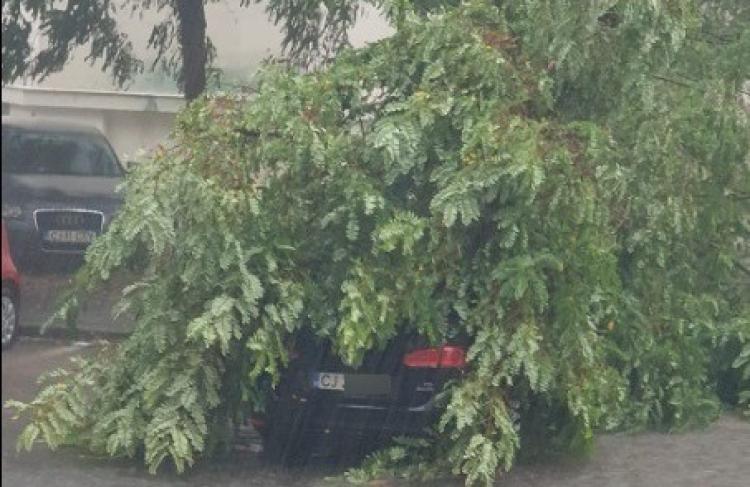 Furtuna face ravagii în Cluj. Un copac a căzut peste o mașină