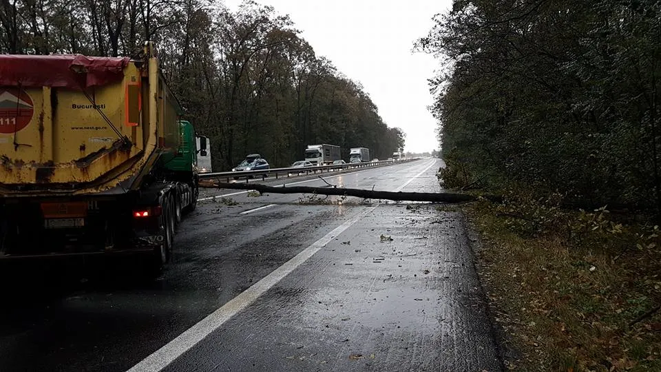 Furtuna face ravagii în Cluj! Un copac a fost doborât de vijelie pe carosabil. Pompierii clujeni intervin de urgență / S-a emis o avertizare RO-ALERT