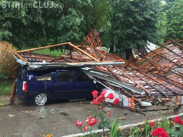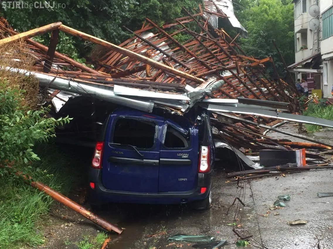 Furtună în Cluj! Vântul a rupt copaci și a distrus mașini - FOTO