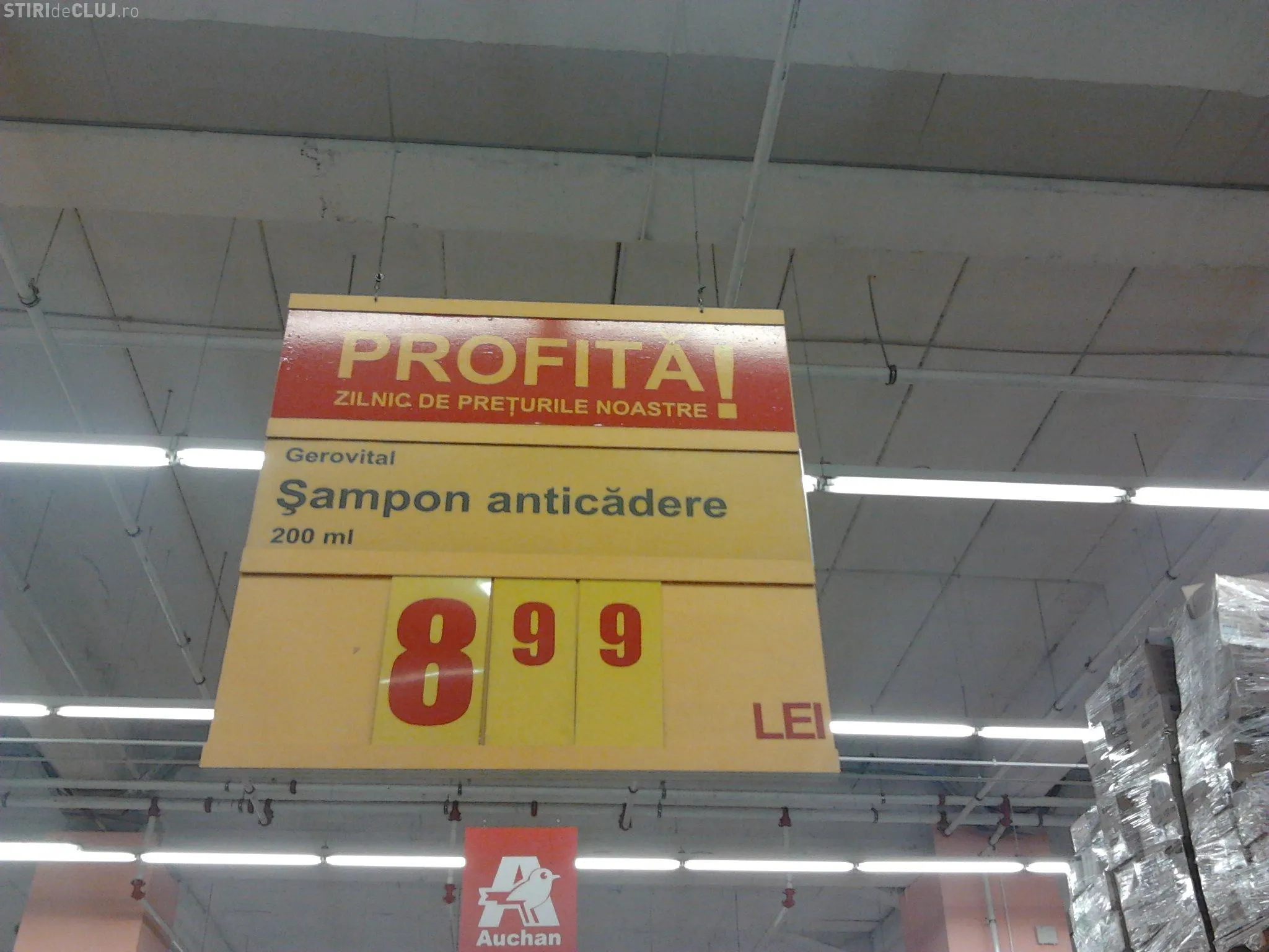 Clujenii care au trecut prin supermarket au fost nedumeriti cand s-au "lovit" de un afis care anunta vanzarea samponului "anticadere".