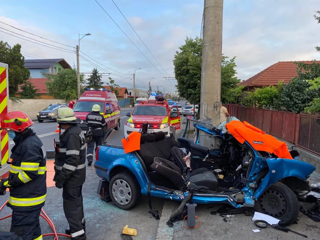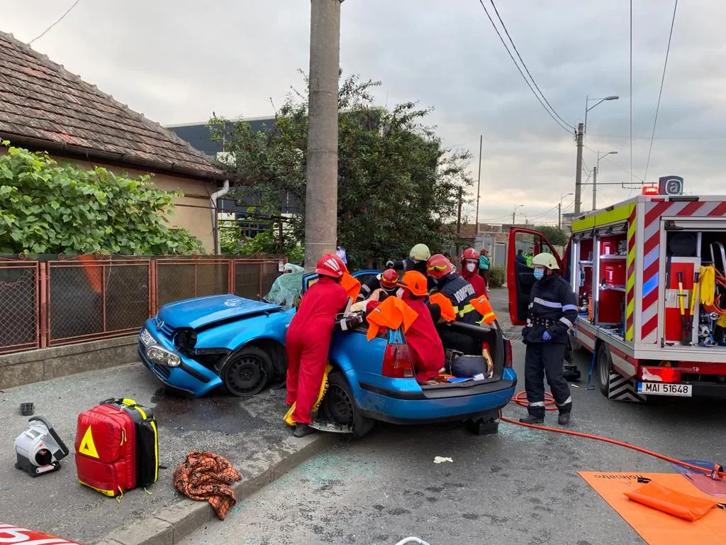 Un accident grav s-a produs joi dimineața, pe strada Traian Vuia. Trei persoane au rămas încarcerate într-un autoturisme care a lovit un stâlp.
