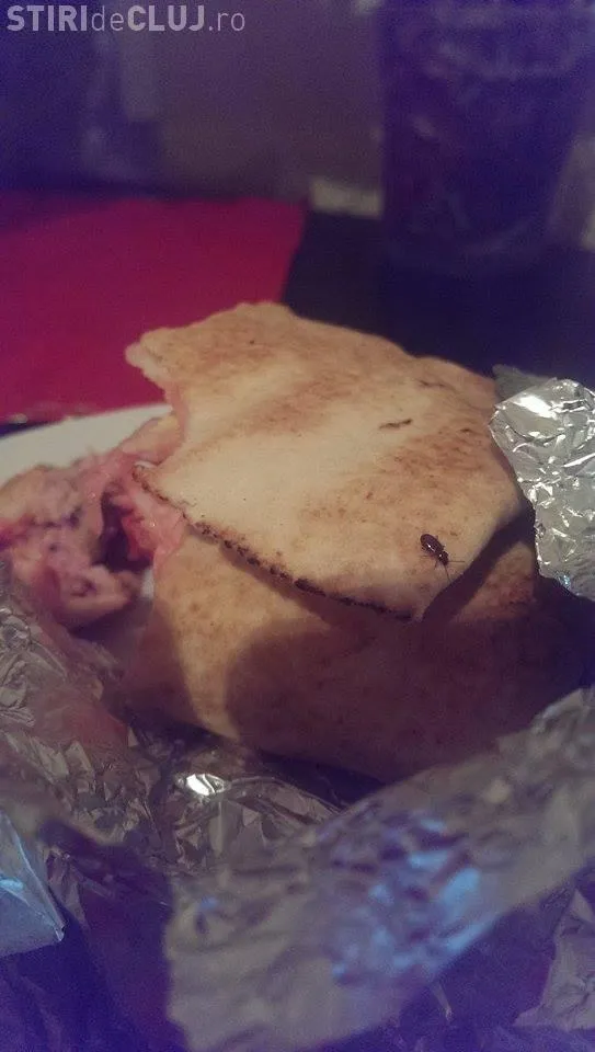 Gândac pe o shaorma cumpărată din centrul Clujului - FOTO