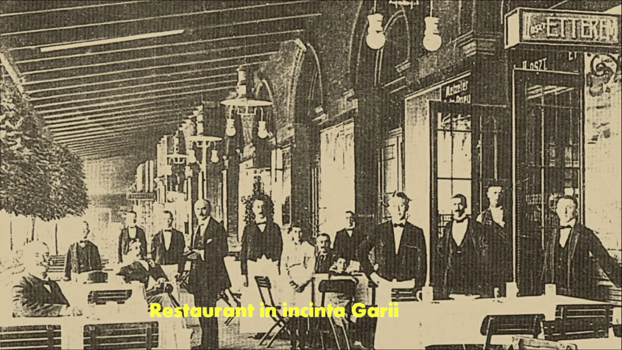 Fotografiile păstrate arată și un frumos restaurant, care a funcționat în incinta Gării Cluj la începutul veacului trecut, având terasa pe peron.