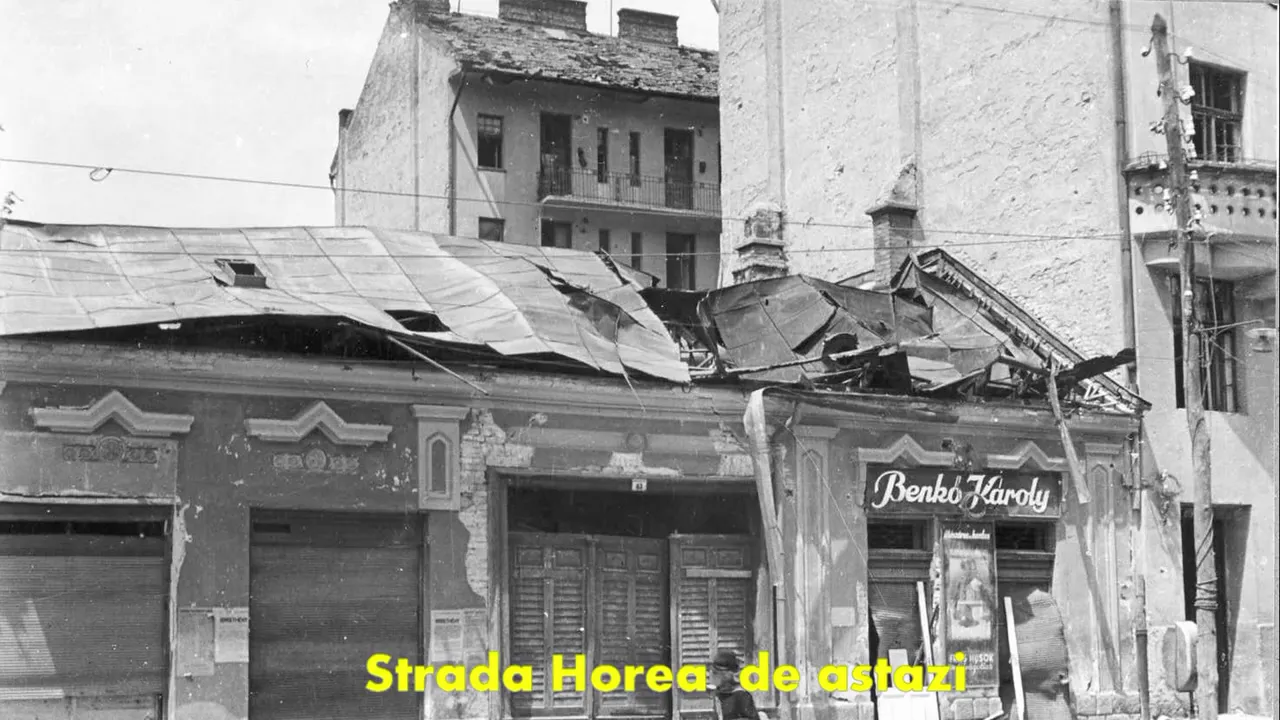 În iulie 1944, Gara Cluj a fost distrusă de bombardamentele din Al Doilea Război Mondial. Și strada Horea a fost afectată serios, după cum se vede în fotografii.