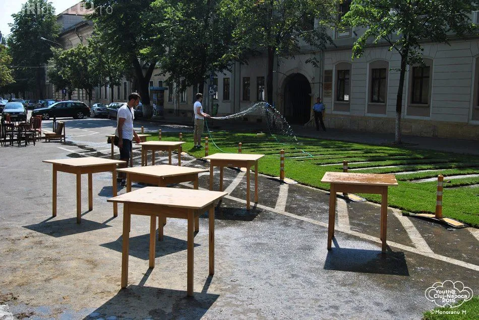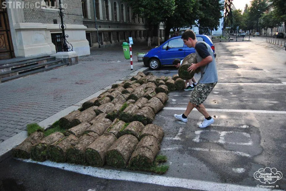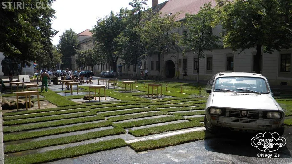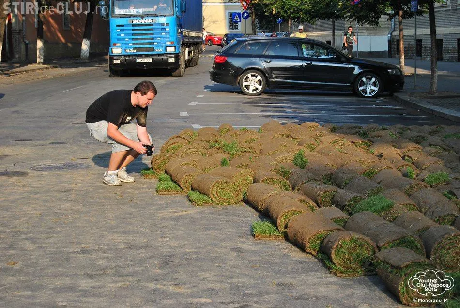 Strada Mihail Kogălniceanu devine spațiu pietonal în timpul evenimentului ”Cluj Never Sleeps”, asfaltul zona fiind acoperit cu gazon.