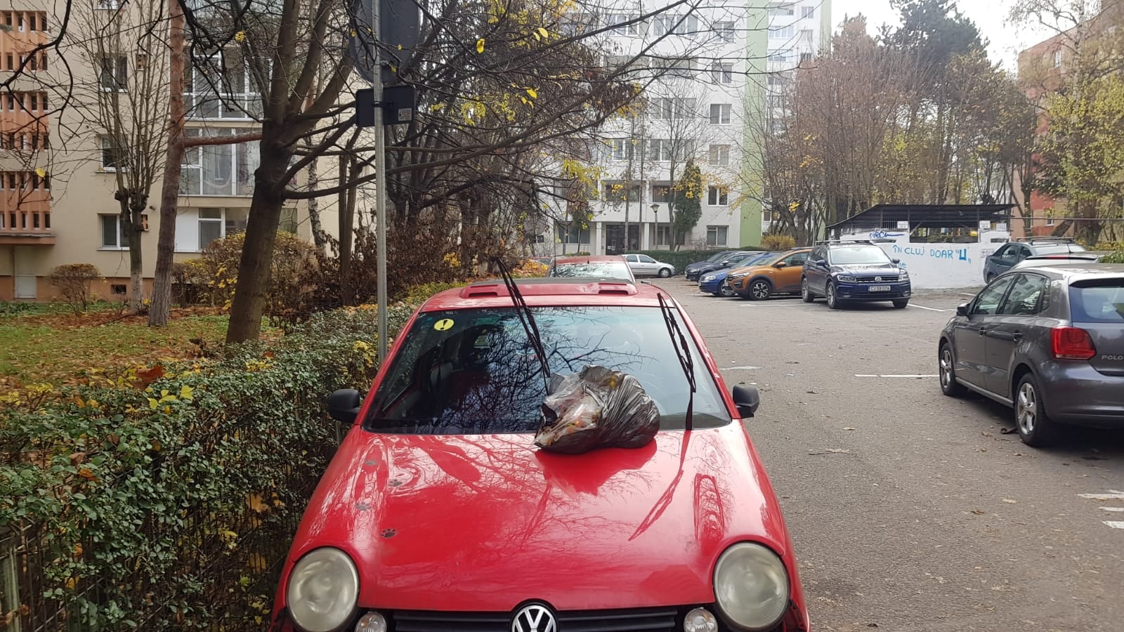 Un clujean a văzut, miercuri dimineața, un autoturism parcat pe marginea unei alei, din Gheorgheni, aproape de strada Lăcrămioarelor, cu ștergătoarele ridicate și un sac de gunoi pe parbriz. Era un soi de avertisment pentru că a parcat acolo. ”Mă întreb cu amărăciune: Ce urmează? Ne vom tăia cu săbii Ninja?”, se întreabă clujeanul.