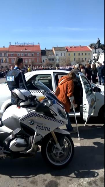 Totuși, polițiștii au dat dovadă de omenie și au sărit în ajutorul unei femei cu handicap locmotor.
