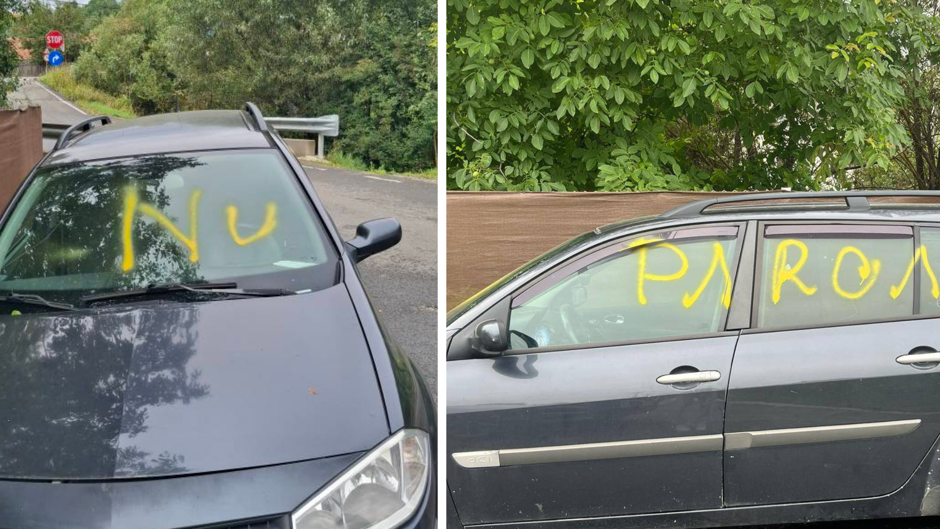 Mașina unei clujence, vandalizată cu spray în plină stradă. Mesajul lăsat pe caroserie a șocat-o: „NU PARCA!”