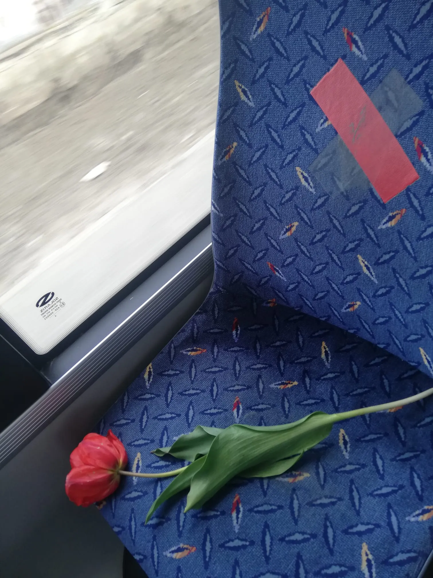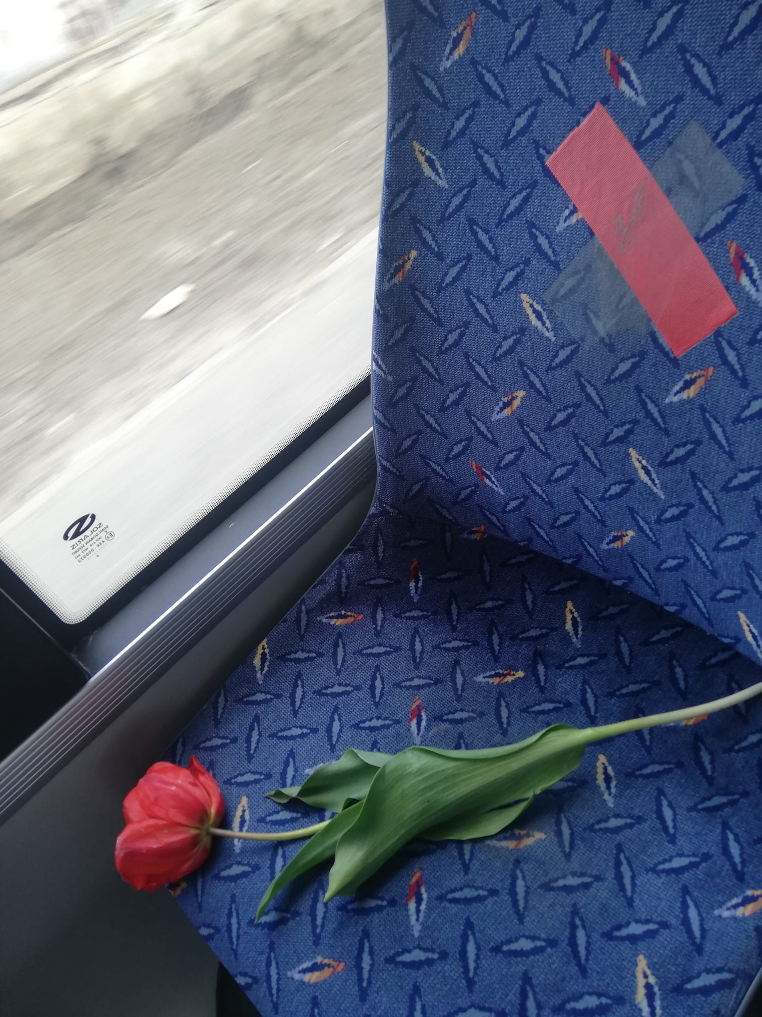 De Florii, în Florești pe autobuzul M26, cineva a lăsat flori pe scaune.