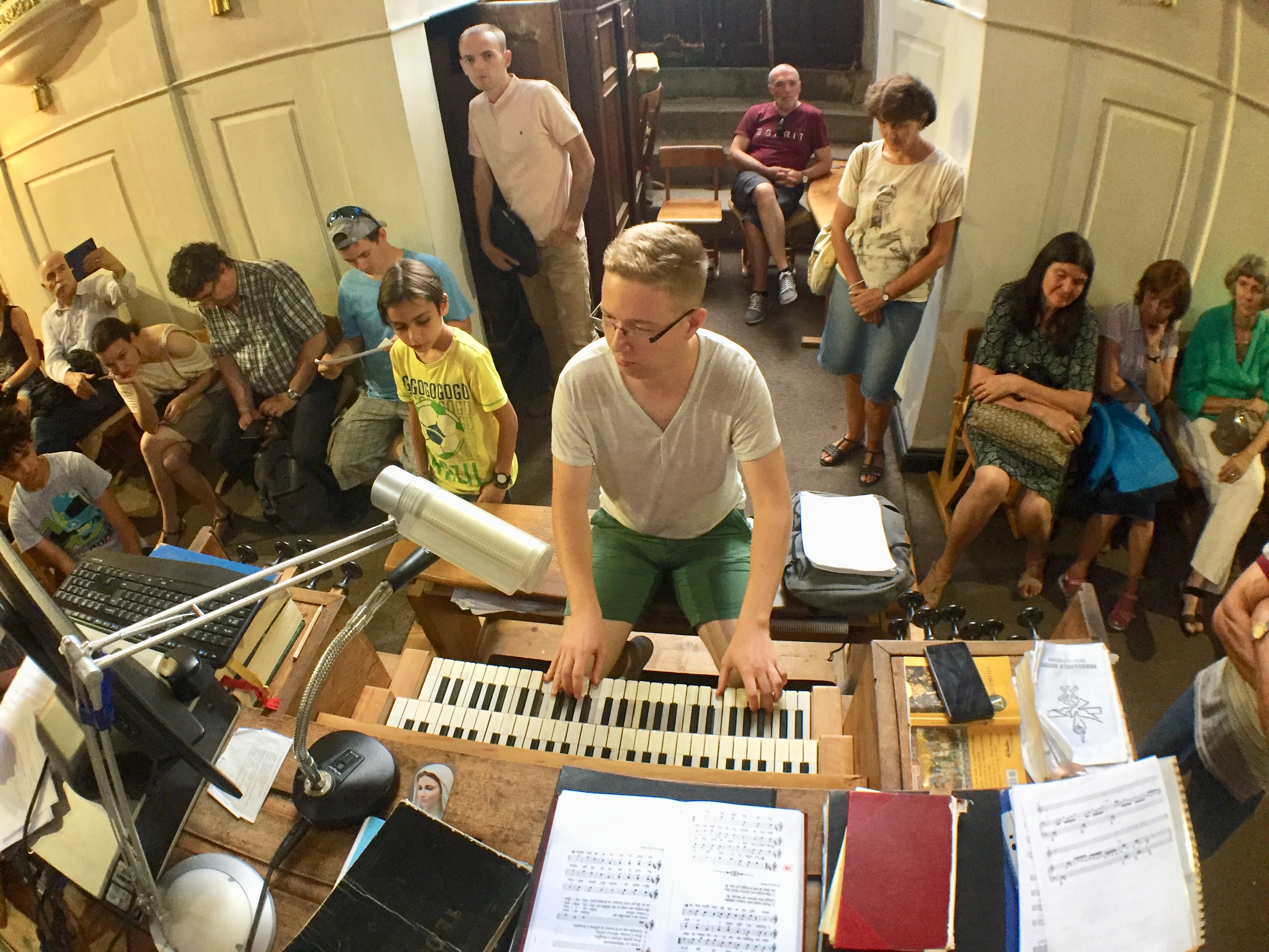 ”Continuăm vizitele la orgi bisericești și prin metode interactive descoperim împreună mecanismul de funcționare al instrumentului. Analizăm tuburile orgii și conștientizăm necesitatea claviaturii, rolul burdufului, al tracturilor și al butoanelor de registre. În timp ce organistul cântă, noi suntem atenți vibrațiile și caracteristicile instrumentului.