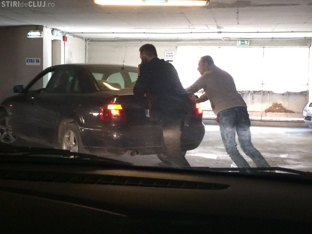 Un șofer clujean se poate declara cel mai mare ghinionist, după ce i-a ”murit” mașina la etajul patru din Parkingul Primăriei Cluj-Napoca.