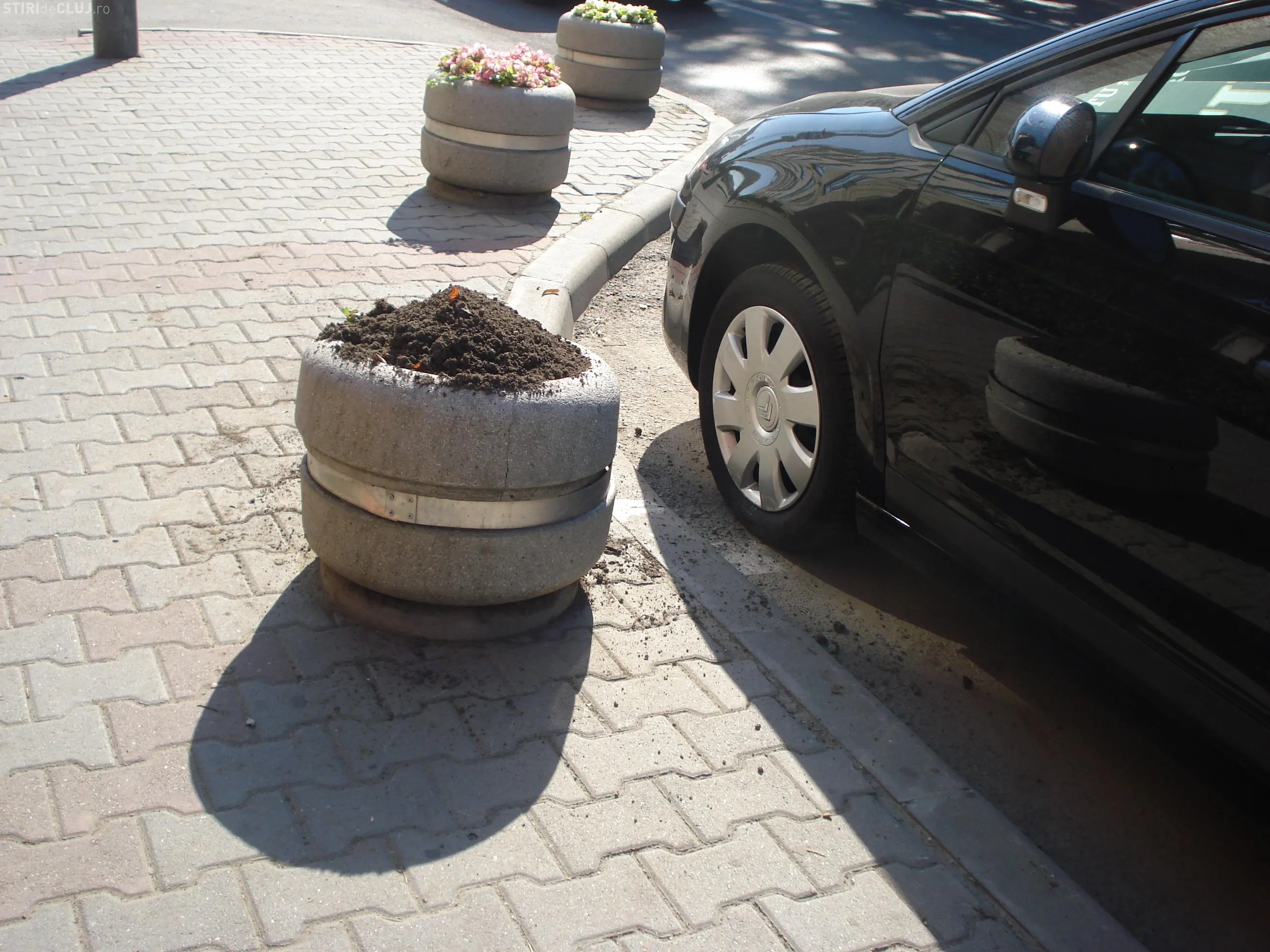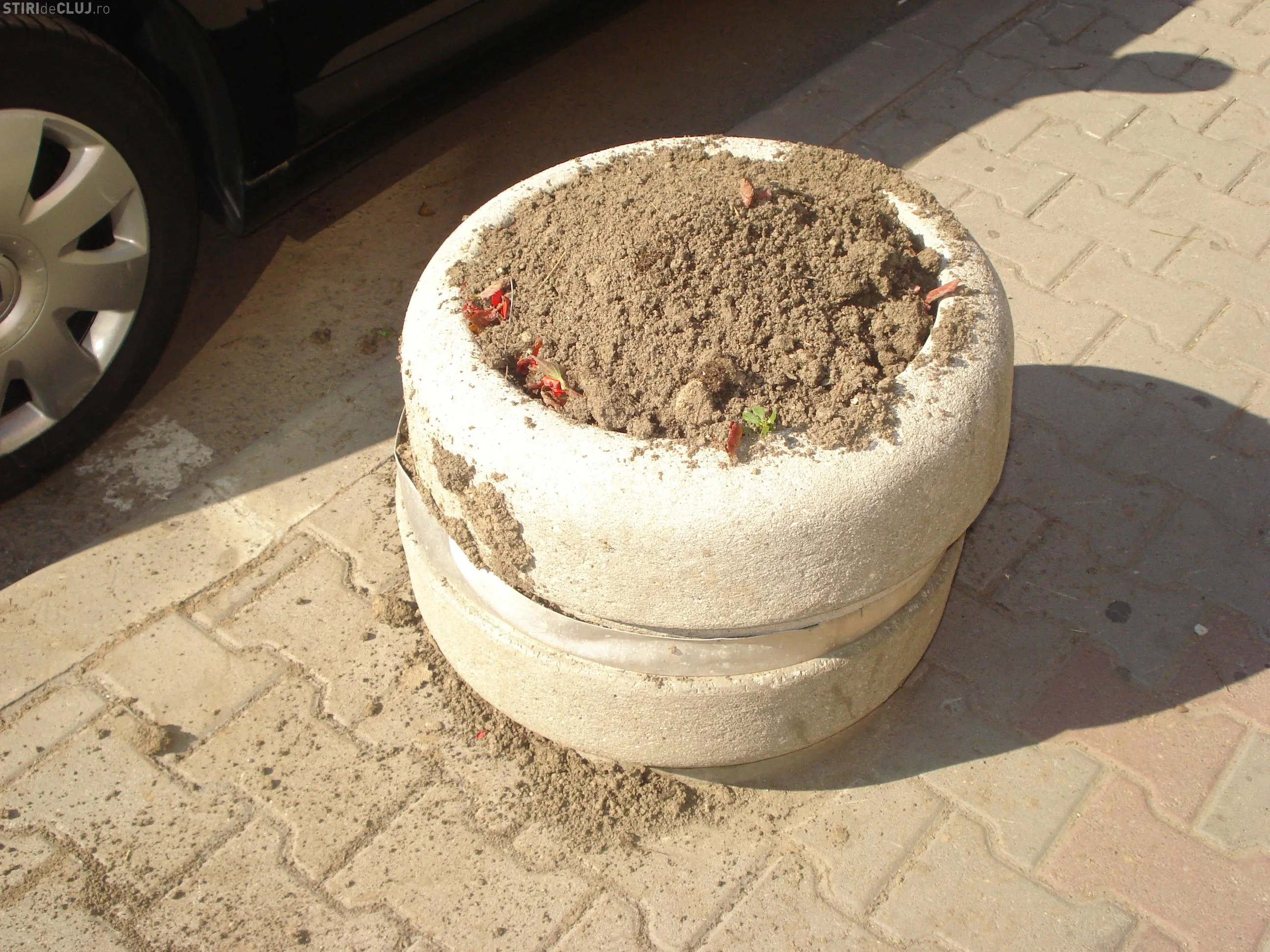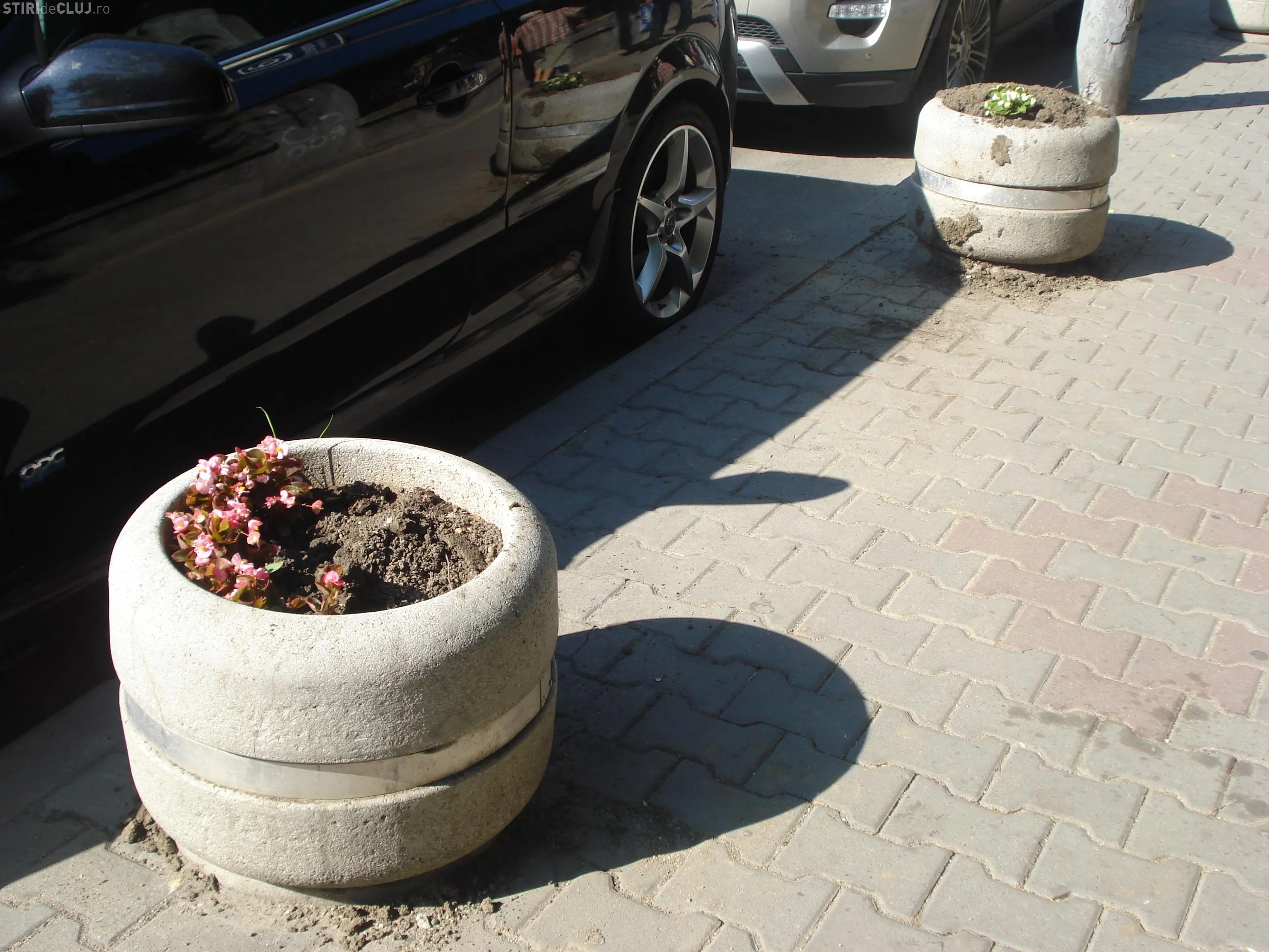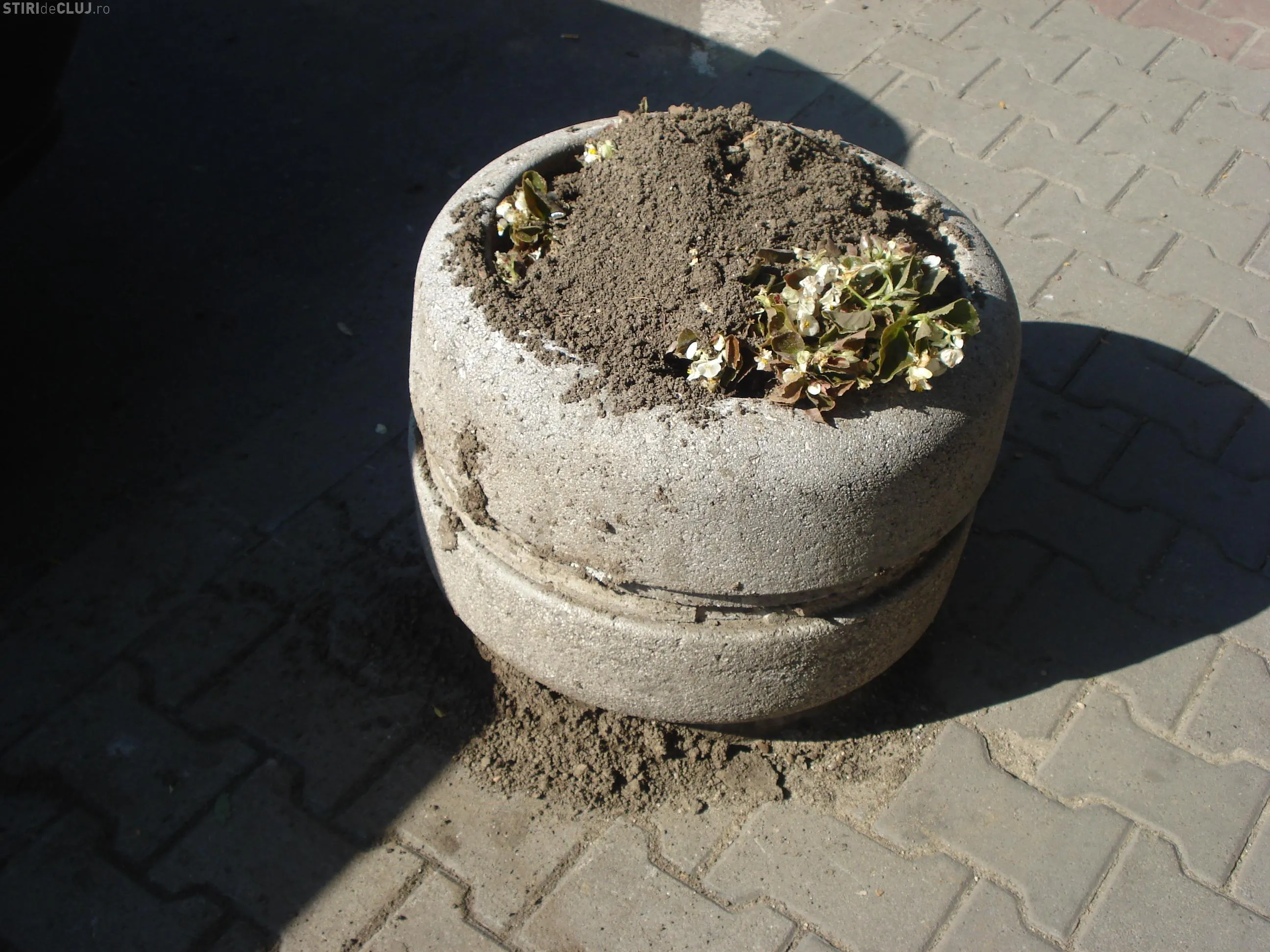 Ghivecele cu flori, bătaia de joc a unor clujeni FOTO ŞTIREA CITITORULUI