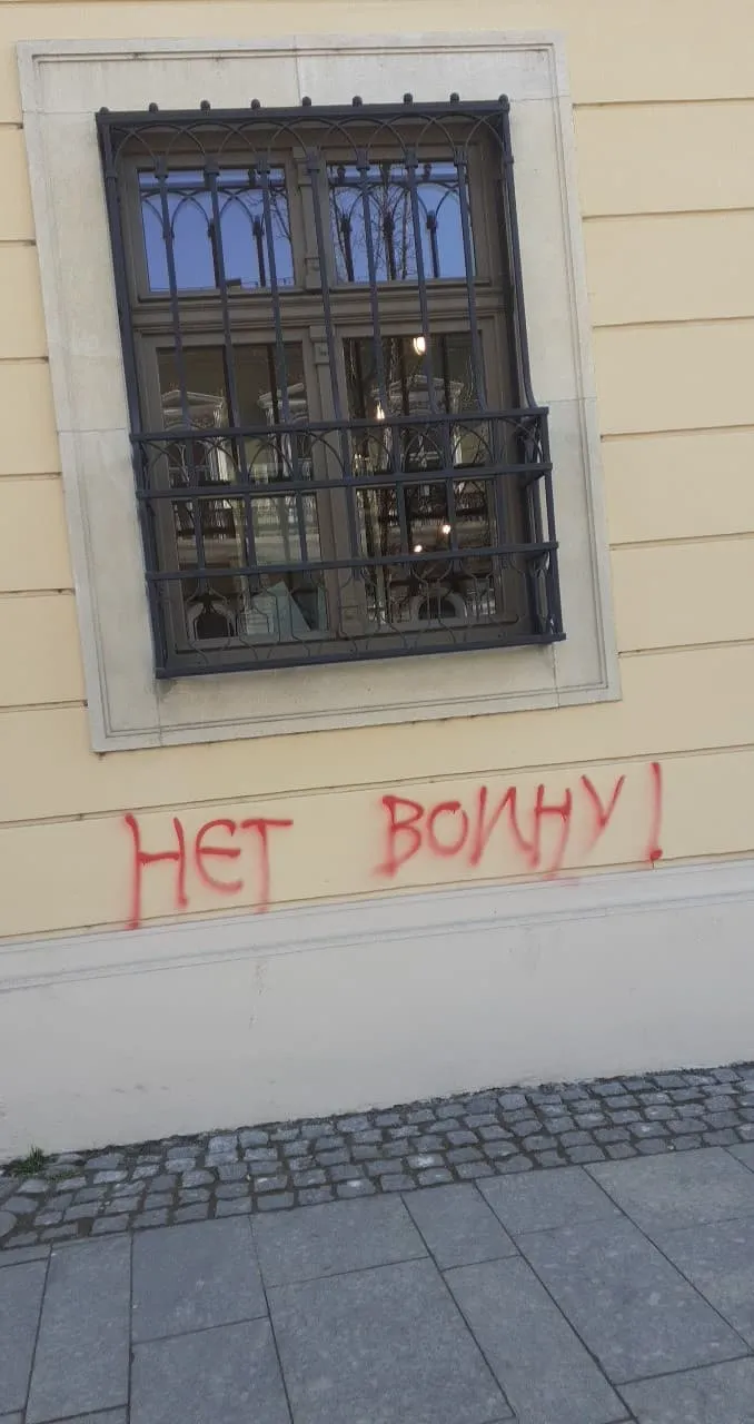 Câteva mesaje împotriva războiului au apărut pe clădirile de pe strada Memorandumului.