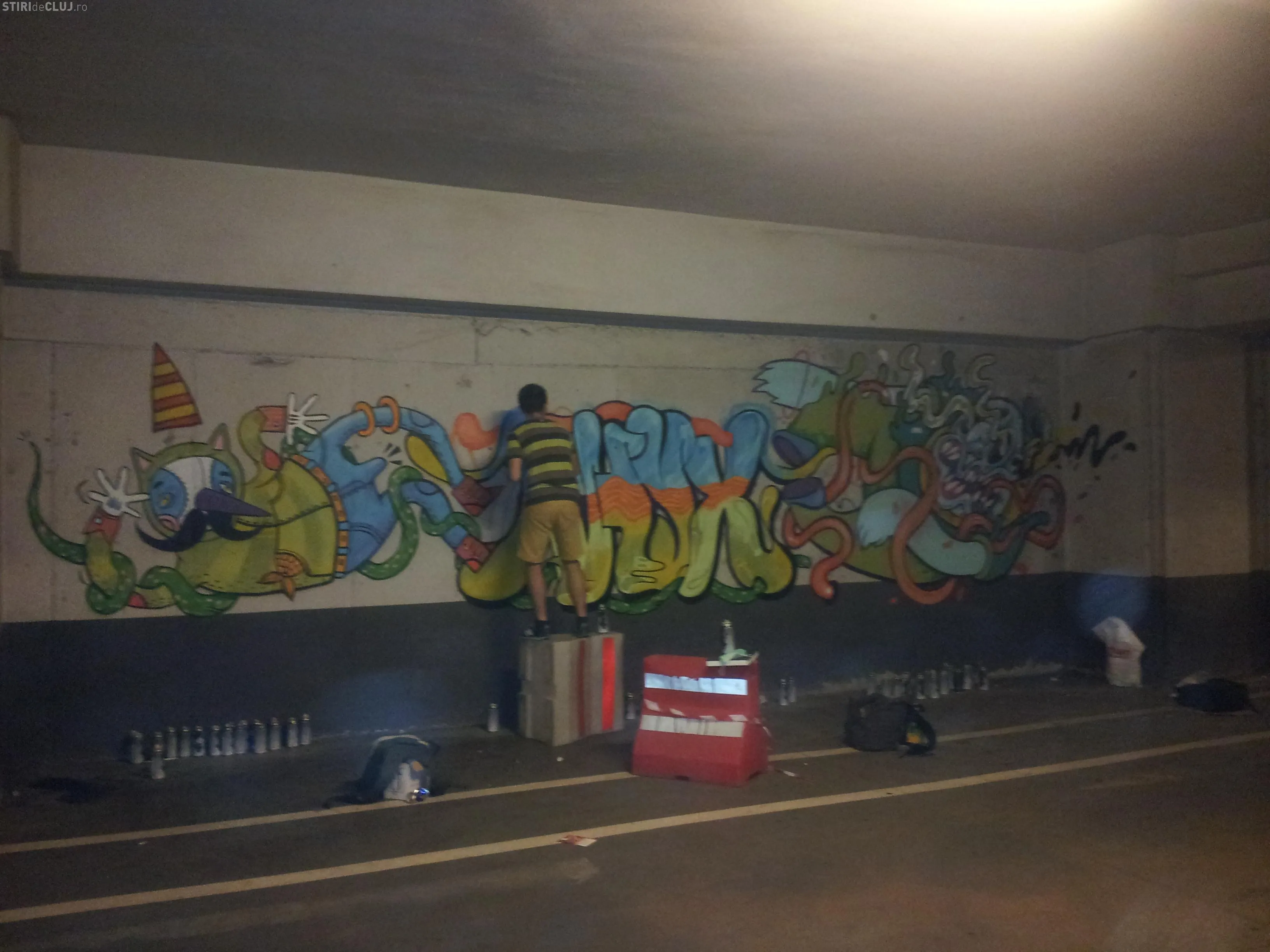 Graffiti în parcarea Iulius Mall Cluj - FOTO
