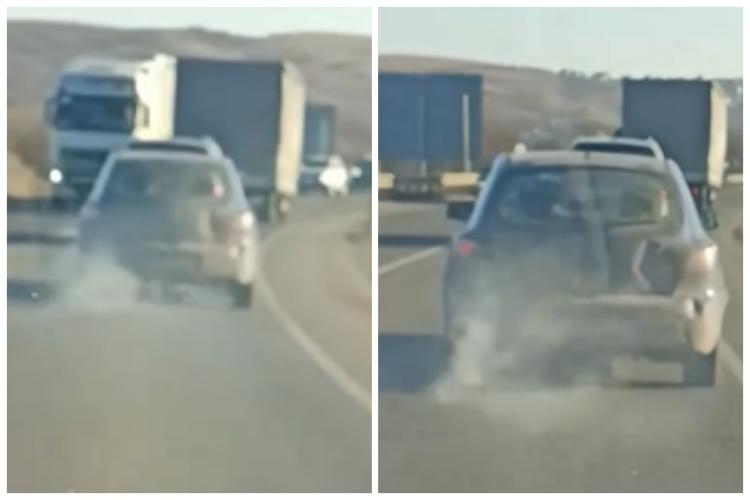 Un șofer din Sălaj a speriat traficul din Cluj, după ce a fost filmat în timp ce circula pe o stradă din oraș, cu mașina care lăsa un val de fum gros în urma lui.