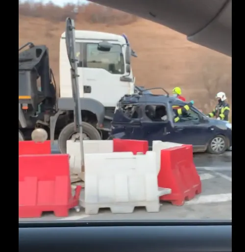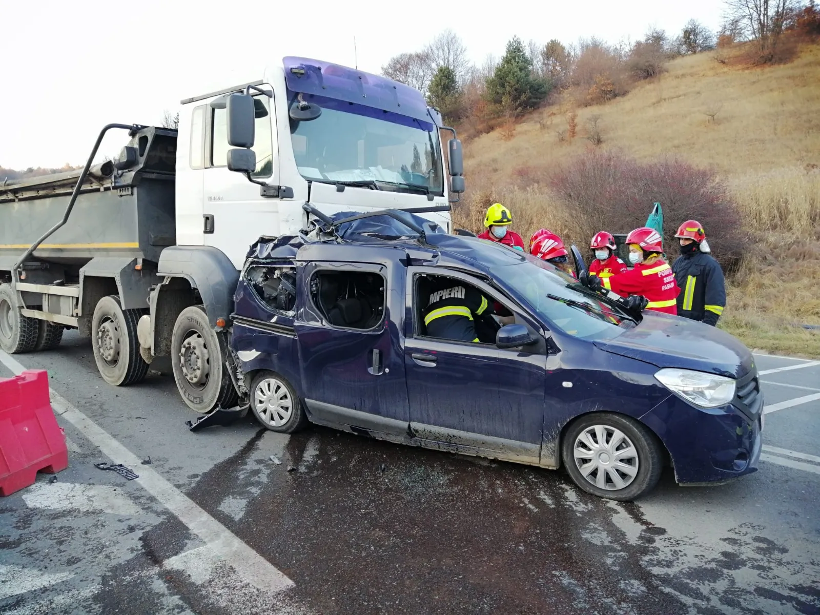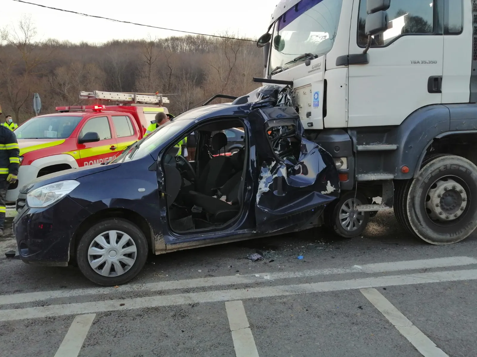 Solicitarea pentru intervenția pompierilor a fost înregistrată în jurul orei 16.10, iar la fața locului au găsit un autocamion și un autoturism avariate, iar în cel din urmă se afla un bărbat, de circa 40 de ani, blocat înăuntru. Acesta era în stare de conștiență, era cooperant și cu suspiciuni de traumatisme multiple.