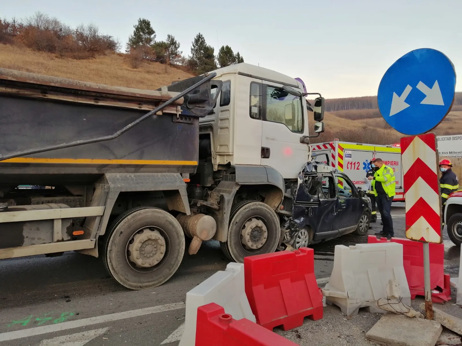 ”Polițiștii au fost sesizați în jurul orei 16.05 referitor la o coliziune produsă între un autoturism și un camion pe DN1 E60.