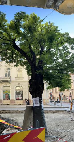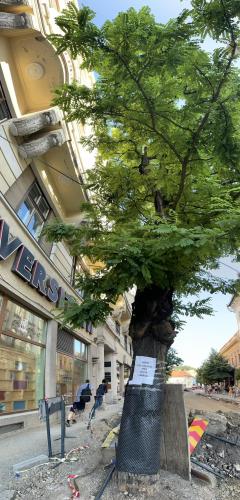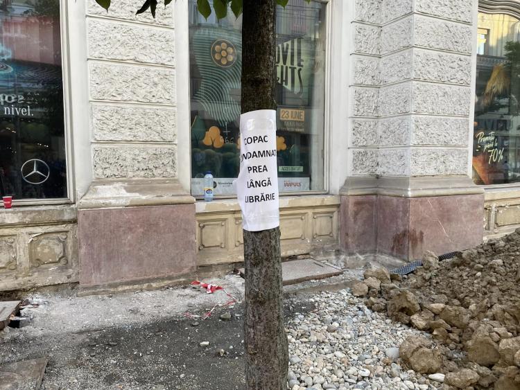 Justificarea lui Emil Boc este că nivelul străzii va fi coborât și falnicii copaci vor rămâne cu rădăcinile afară.