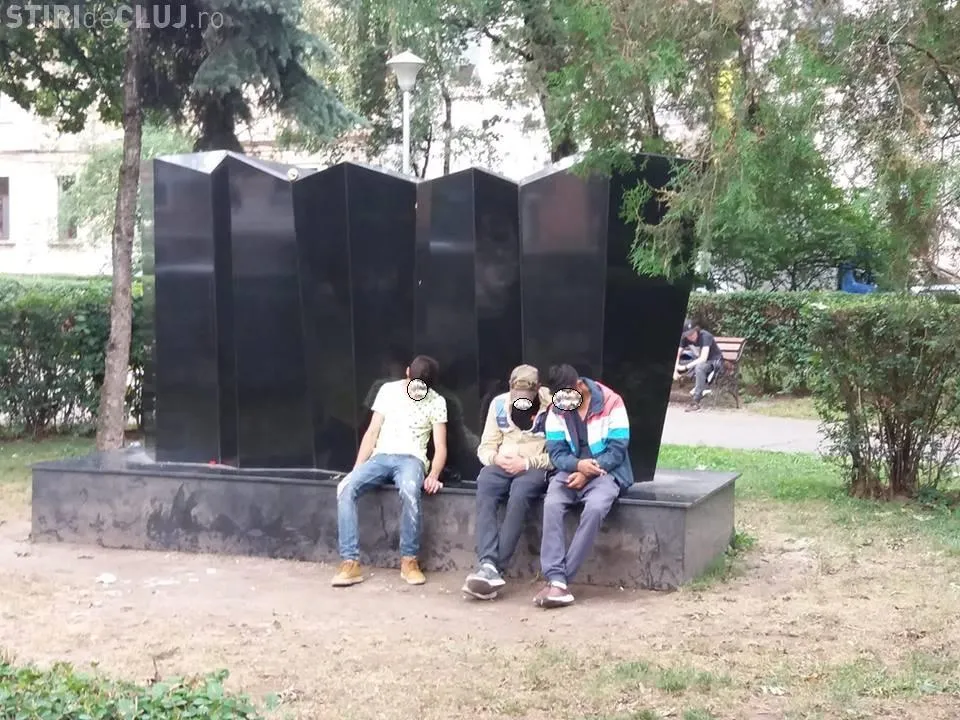 ”Grup statuar” în centrul Clujului: Tineri ”obosiți” de atâta trudă! - FOTO