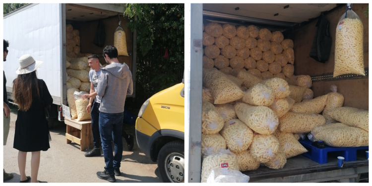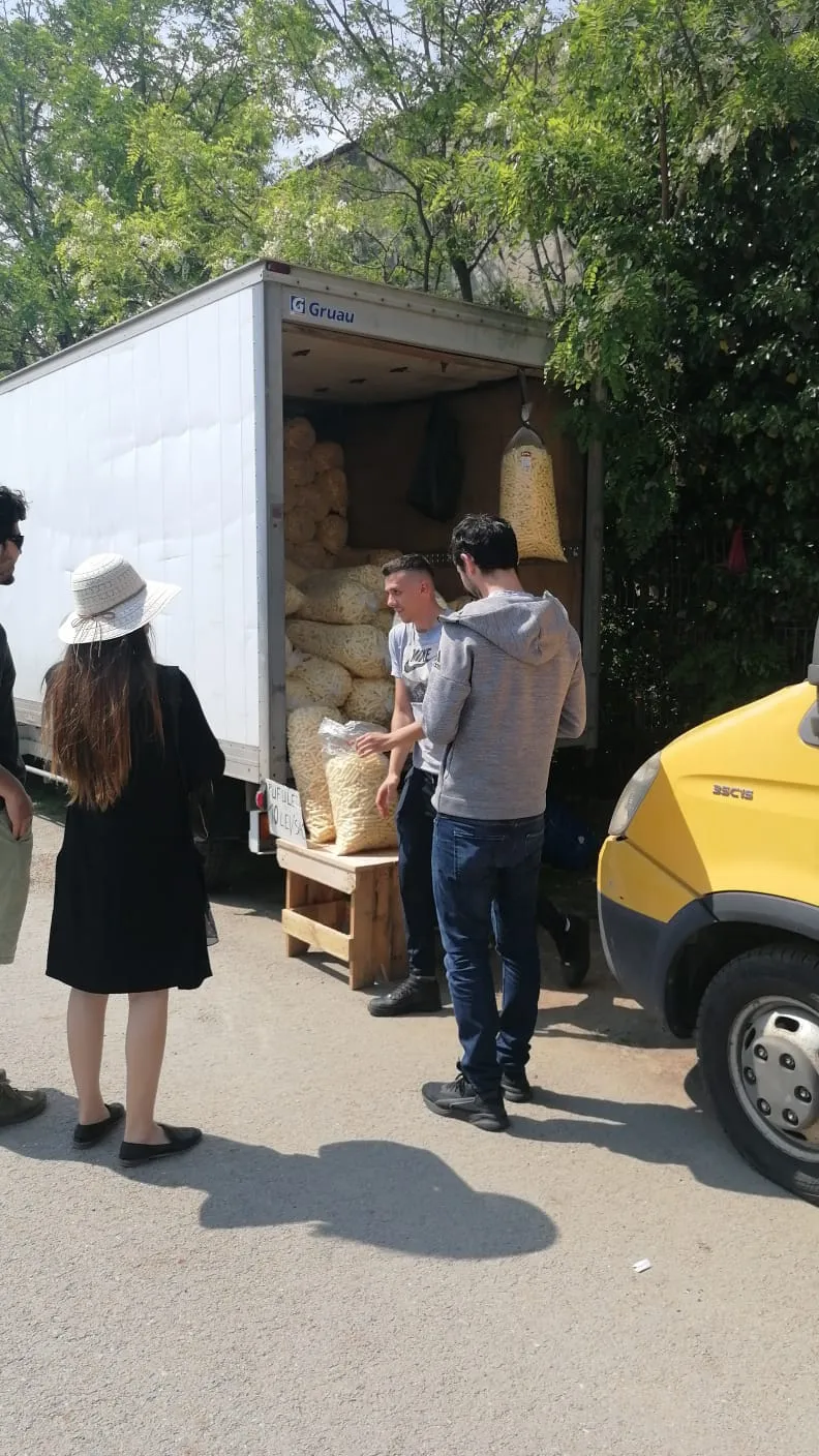 Un antreprenor vinde cu regularitate, direct din camion pufuleți la sac, prețul fiind de 10 lei.
