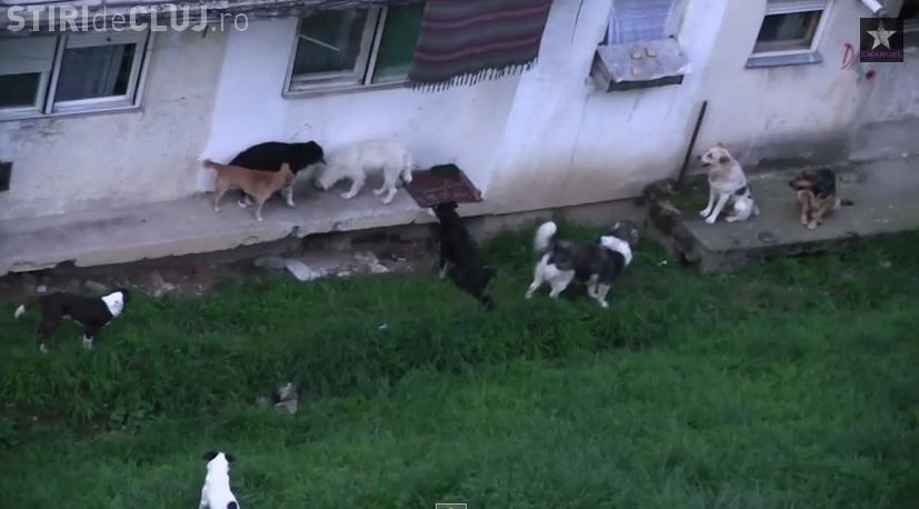 Haite de câini fioroși la Dej: ”Umblă câte 11. Ne e și frică să ieșim din scara blocului!” - VIDEO