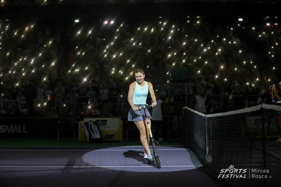 Simona Halep a susținut, sâmbătă, un meci demonstrativ în cadrul Sports Fetival, ce are loc la Cluj-Napoca în acest weekend.