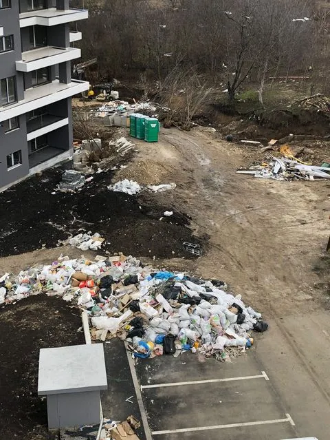 ”Constructorul Studium Green care promovează spațiile verzi și iese în media cu idei ”green/eco”, este incapabil să-și gestioneze propriile deșeuri cauzate de nouă construcție. Acesta este haosul creat pe str Frunzisului, nr 91. Deșeuri depozitate lângă bloc, fără protectie și care la cea mai mică adiere de vânt sunt preluate și duse de curenți de aer în zonele verzi care înconjoară complexul de blocuri”, ne-a relatat un cititor.
