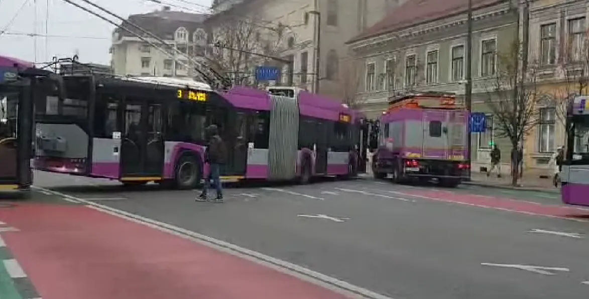 Mai exact, un troleibuz care circulă pe linia 3, cu ruta strada Unirii - Piața Mihai Viteazu, s-a stricat la intrarea pe Bulevardul 21 Decembrie 1989. În spatele său, mai multe vehicule de transport în comun au fost nevoite să oprească, neputând să își continue drumul, astfel, traficul rutier fiind dat peste cap.