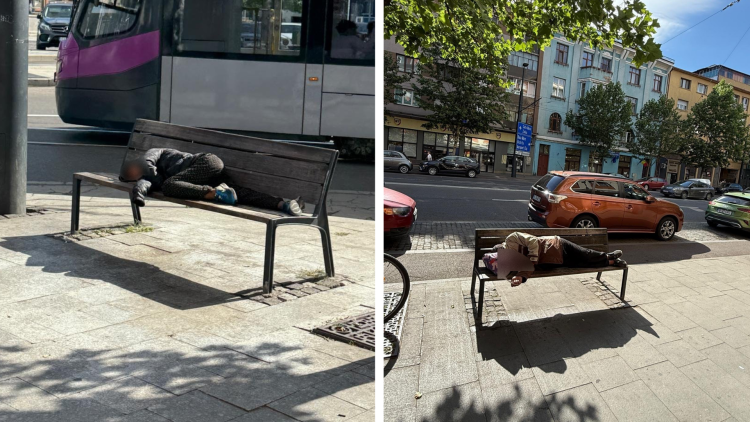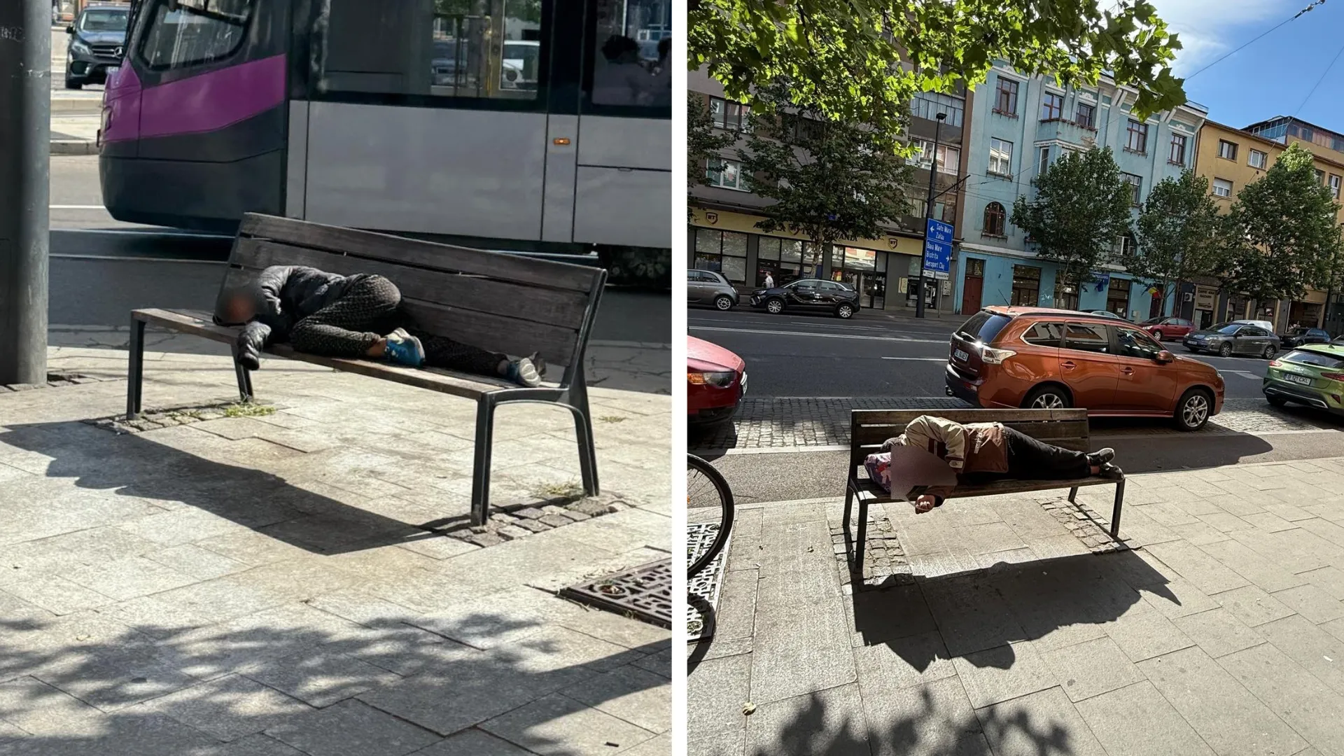 Oameni ai străzii dorm pe băncile de pe Horea 83-85. Locuitorii reclamă disconfort și lipsa reacției autorităților