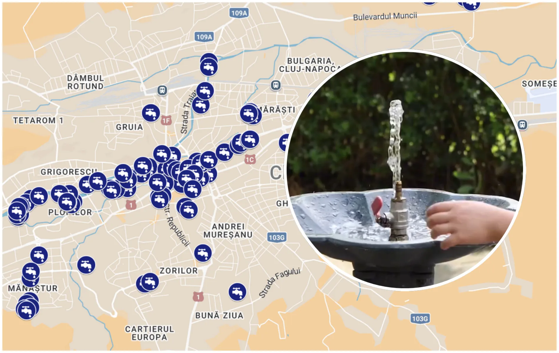 Primăria Cluj-Napoca a realizat o hartă cu locația celor peste 100 de cișmele din oraș, care poate fi văzută și pe Google Maps, precum și pe site-ul Primăriei.