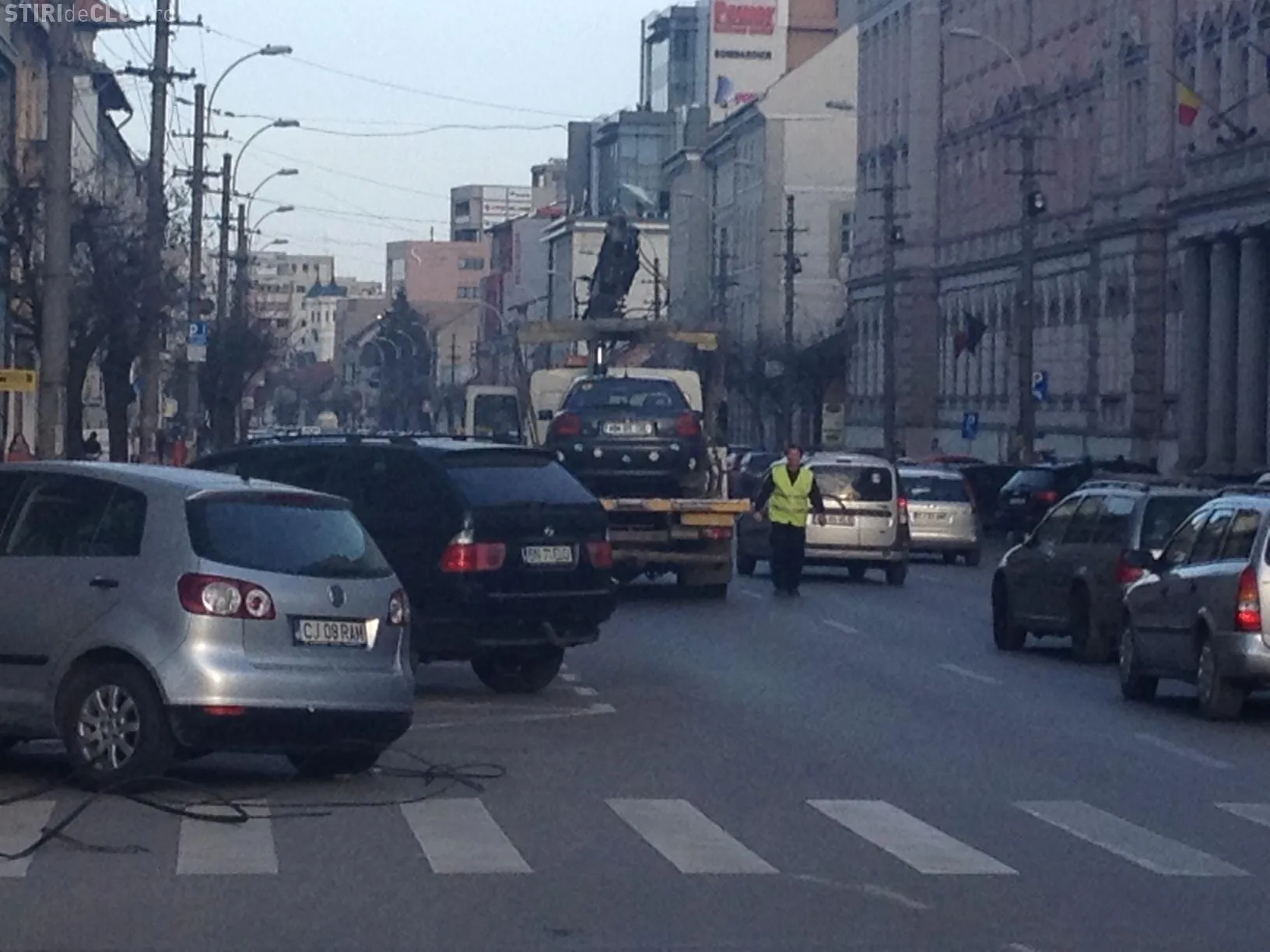 ”Hingherii” de la ridicări auto au rupt cablurile în centrul Clujului și au sters-o cu NESIMȚIRE - VIDEO