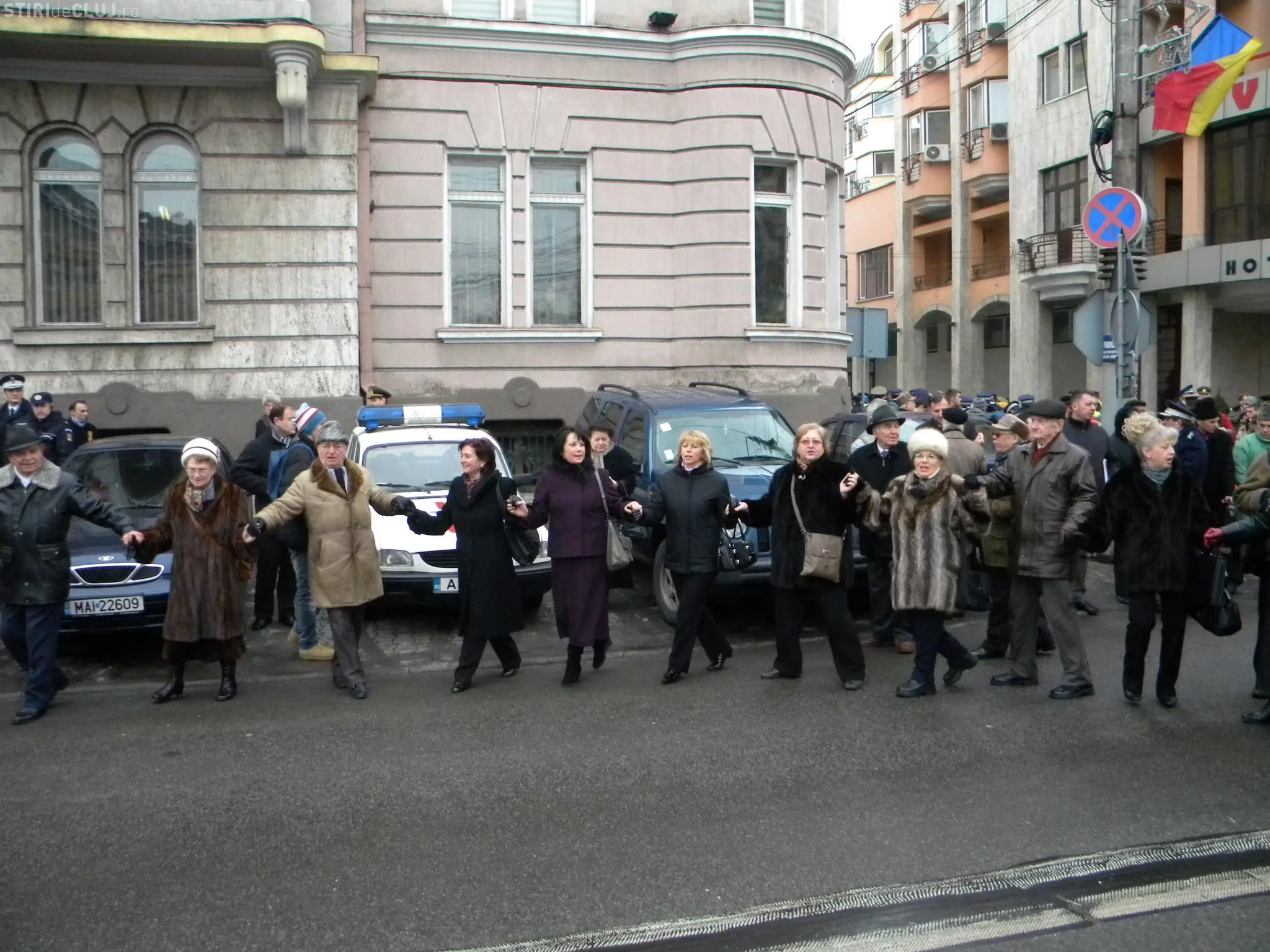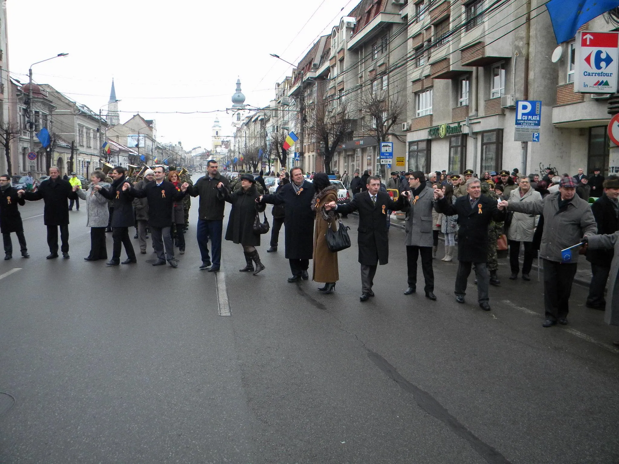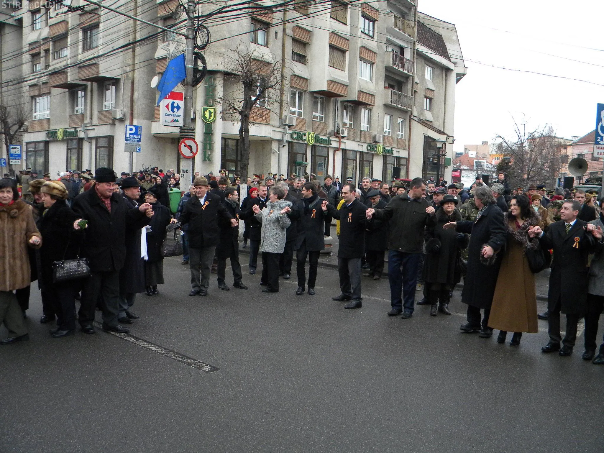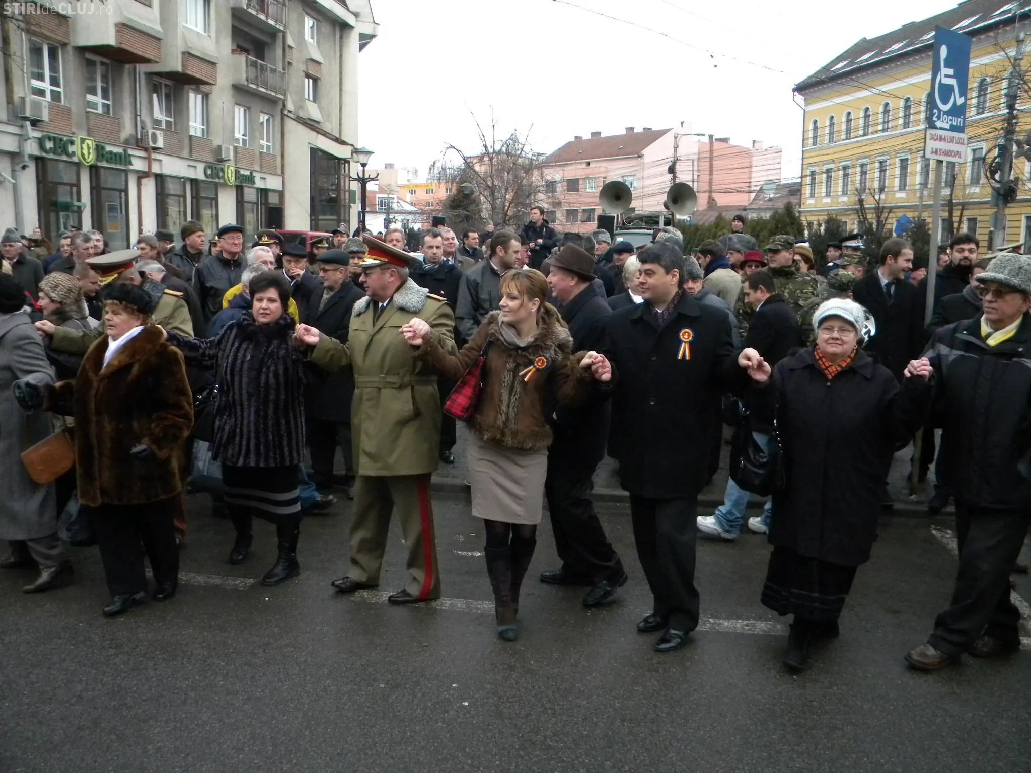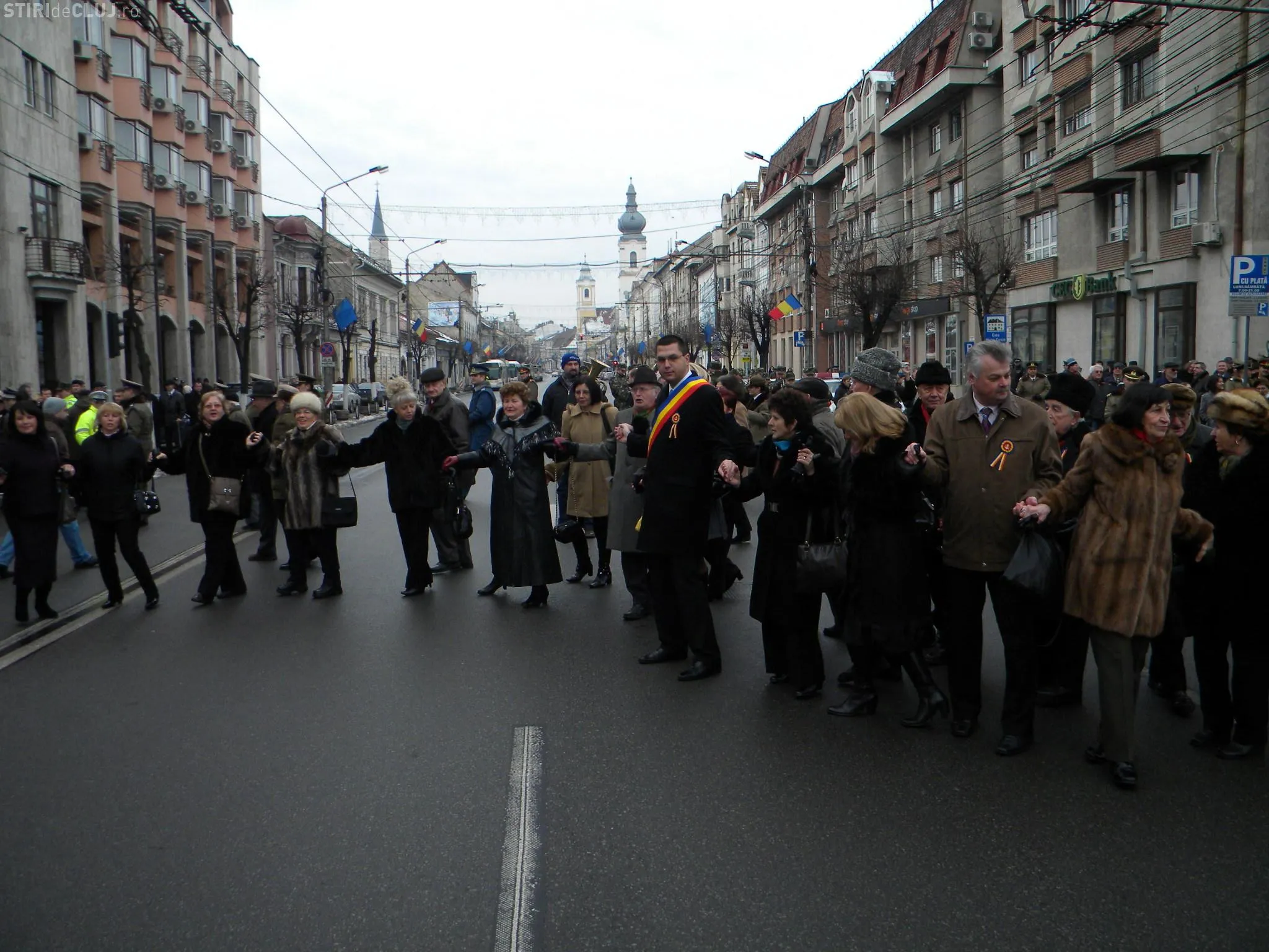 Hora Unirii la Cluj! PDL si USL s-au tinut de mana in fata Prefecturii VIDEO si FOTO