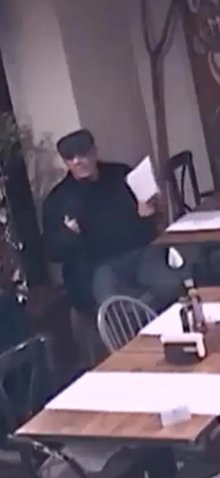 Vezi mai jos filmul furtului. Bărbatul s-a așezat la masă, iar apoi s-a tot mișcat cu scaunul pentru a ajunge lângă haina victimei. A simulat că își dă jos geaca, în timp ce căuta în buzunarele celui de la masa alăturată. După ce a obținut ceea ce căuta, s-a făcut că vorbește la telefon și trebuie să plece.