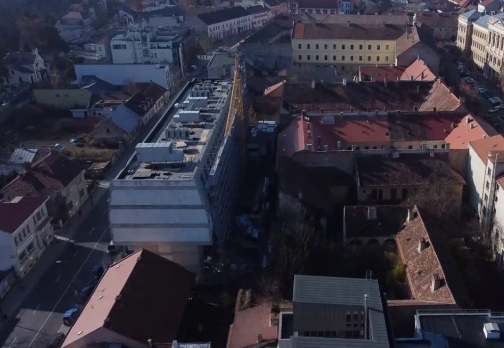 Hotelul ”sicriu” din Cluj-Napoca ia toată lumina imobilului din spate - VIDEO DRONĂ de pe strada Avram Iancu