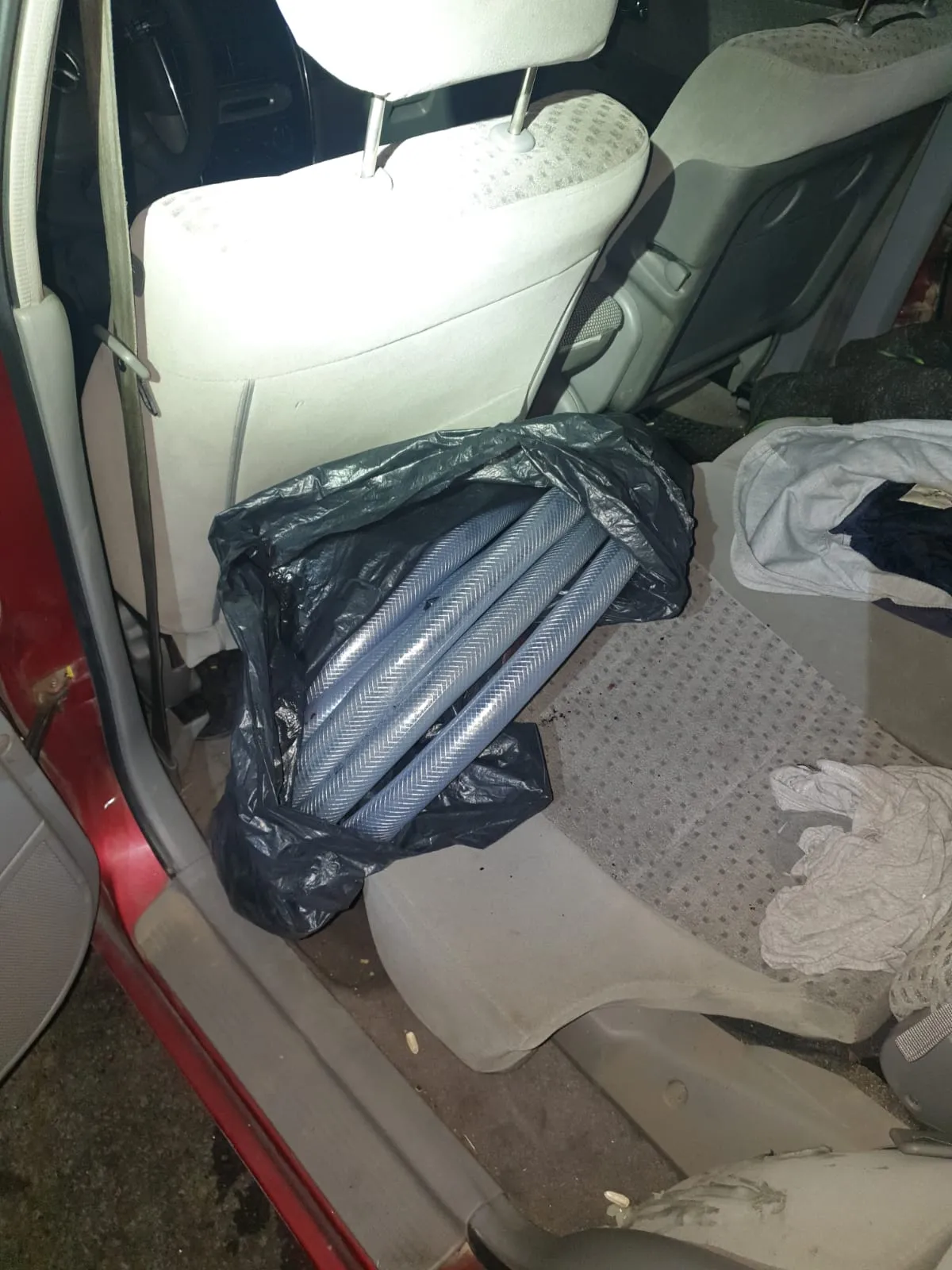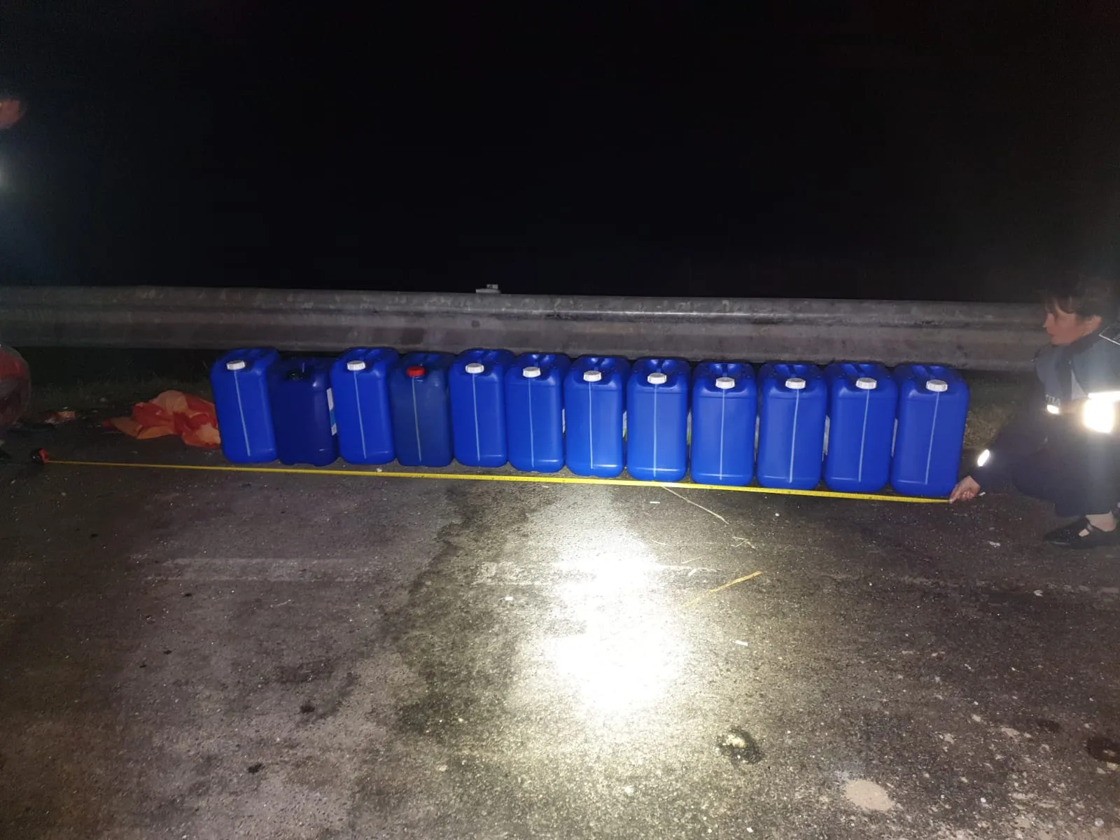 La vederea polițiștilor, persoanele au fugit, la fața locului fiind identificat un bărbat de 22 de ani din comuna Sânpaul, județul Cluj, care era conducatorul unui autoturism cu care persoanele respective se deplasau. În autoturism politistii au identificat 12 canistre din plastic cu o capacitate de 25 de litri fiecare, 2 furtune de 10 m fiecare, 1 furtun de 4,5 m, o șurubelniță și 1 levier de 80 de cm.