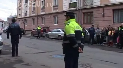 Rudele suspecților s-au adunat în fata Politiei municipiului Dej, iar polițiștii i-au izolat pentru ca lucrurile sa nu scape de sub control.